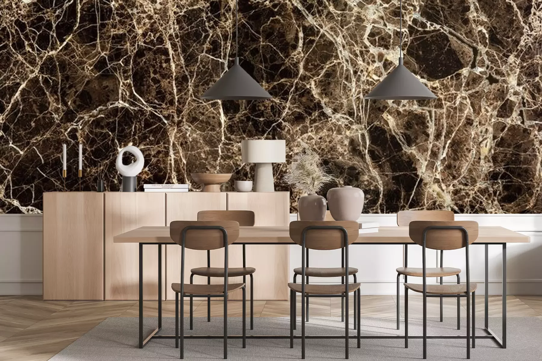 Fototapete Schwarz weißer marmor Flammem Illusion