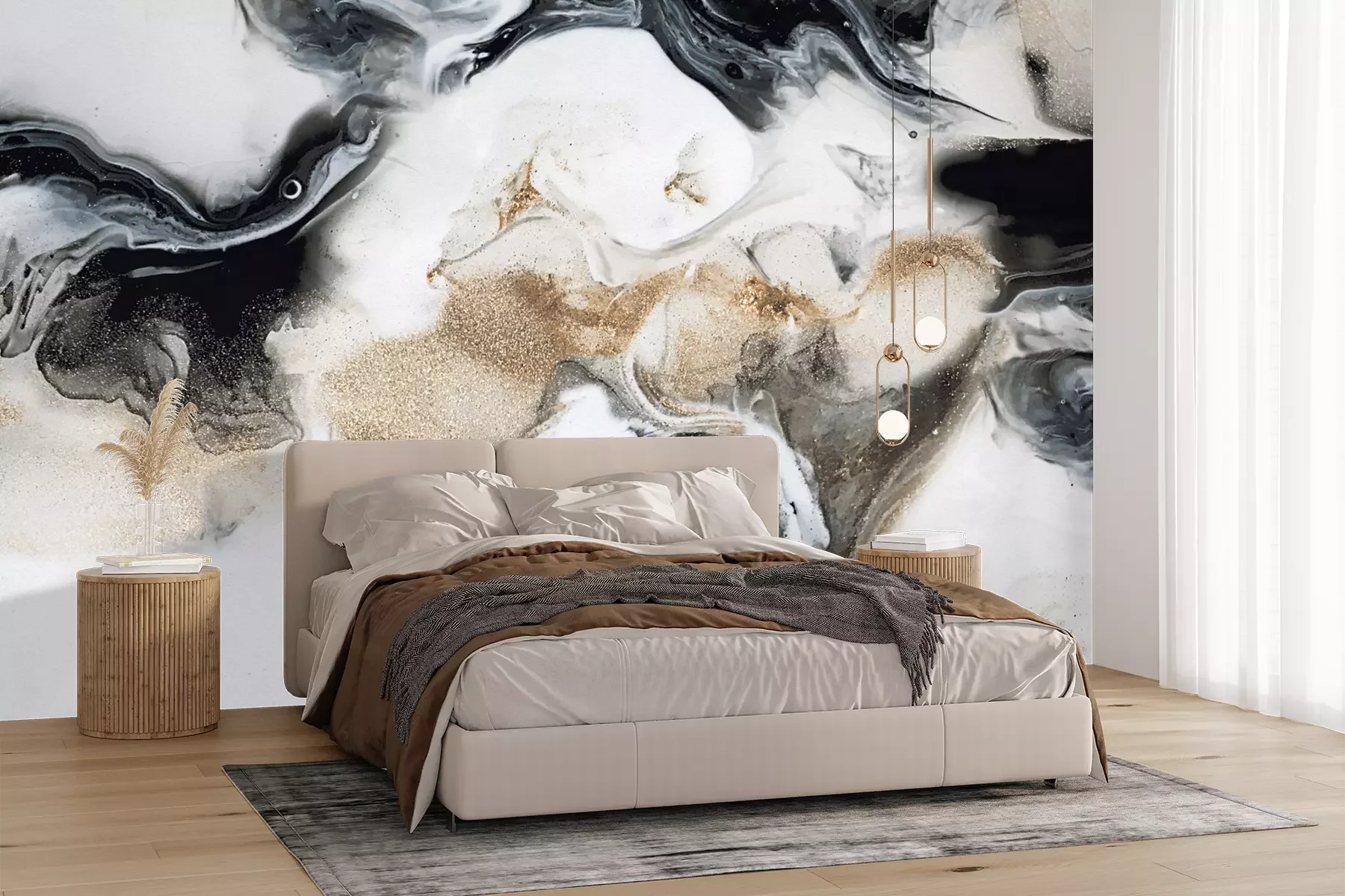 Das Material Premium+ besteht aus einer strukturierten Vinyl-Oberschicht und einem Trägermaterial (Vlies) mit einer Grammatur von 255 g/m², das kleine Unebenheiten der Wand zuverlässig kaschiert. Die feine Sandstruktur verleiht der Oberfläche eine luxuriöse Haptik, während das halbmatte Finish die Tiefe der Farben betont. Das Material ist dampfdurchlässig – so kann diese Fototapete auch in Küchen und Badezimmern eingesetzt werden. Die maximale Breite einer Tapetenbahn beträgt 100 cm. Bei größeren Abmessungen besteht die Fototapete aus mehreren gleich großen Bahnen. Der Kleber wird direkt auf die Wand aufgetragen, und die Fototapete wird auf Stoß angebracht, was für einen ästhetischen Effekt ohne sichtbare Fugen sorgt. Die Oberfläche ist pflegeleicht und kann bei Bedarf sanft mit einem feuchten Tuch abgewischt werden.