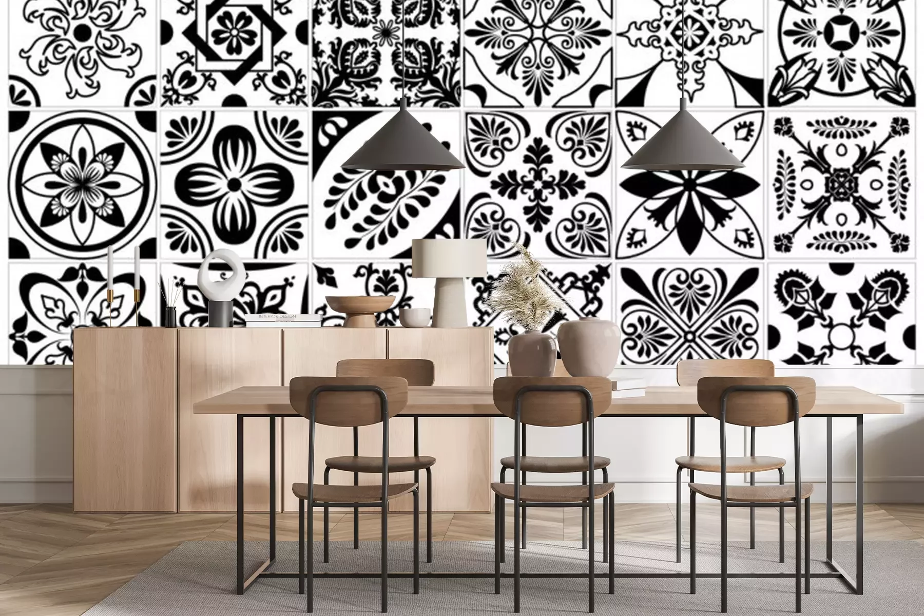 Fototapete Schwarz-weißes Mosaik mit orientalischen Mustern