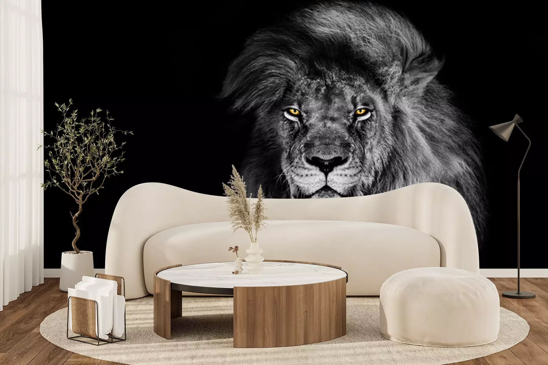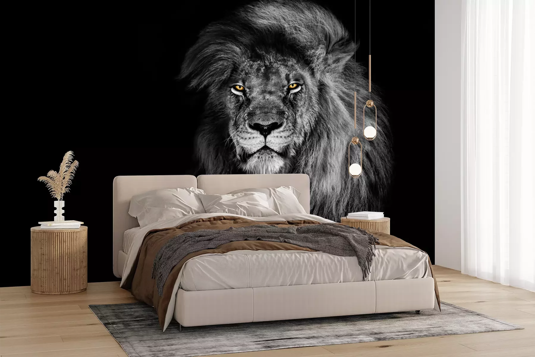 Fototapete Schwarz-weißes Porträt des Königs der Löwen