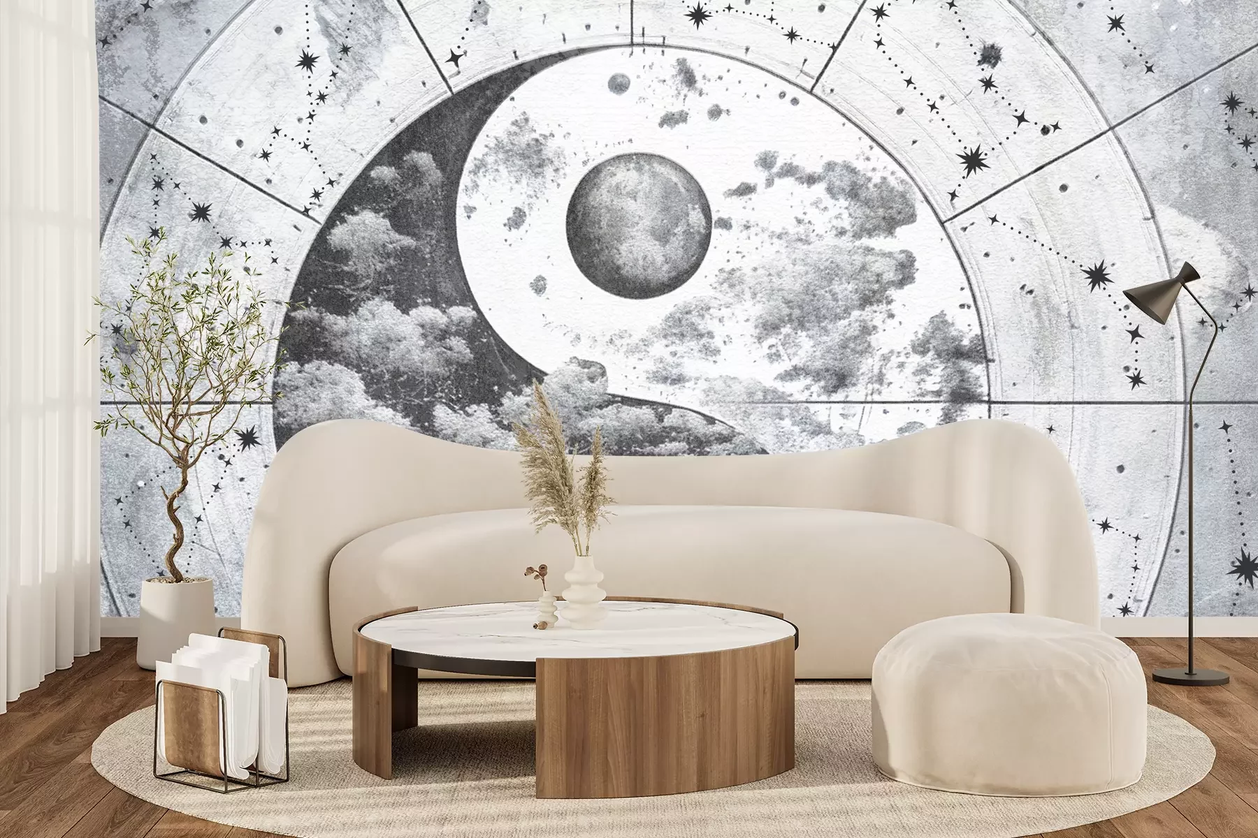 Das Material Premium+ besteht aus einer strukturierten Vinyl-Oberschicht und einem Trägermaterial (Vlies) mit einer Grammatur von 255 g/m², das kleine Unebenheiten der Wand zuverlässig kaschiert. Die feine Sandstruktur verleiht der Oberfläche eine luxuriöse Haptik, während das halbmatte Finish die Tiefe der Farben betont. Das Material ist dampfdurchlässig – so kann diese Fototapete auch in Küchen und Badezimmern eingesetzt werden. Die maximale Breite einer Tapetenbahn beträgt 100 cm. Bei größeren Abmessungen besteht die Fototapete aus mehreren gleich großen Bahnen. Der Kleber wird direkt auf die Wand aufgetragen, und die Fototapete wird auf Stoß angebracht, was für einen ästhetischen Effekt ohne sichtbare Fugen sorgt. Die Oberfläche ist pflegeleicht und kann bei Bedarf sanft mit einem feuchten Tuch abgewischt werden.