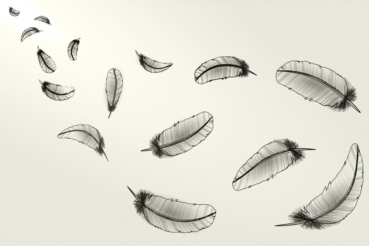 Fototapete: Schwarze gemalte Federn auf hellem Hintergrund