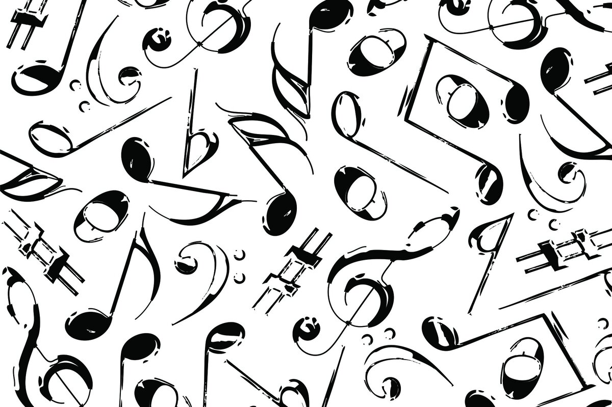 Fototapete: Schwarze Musiknoten auf weißem Hintergrund