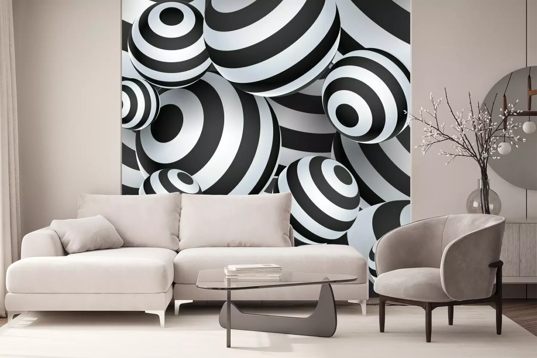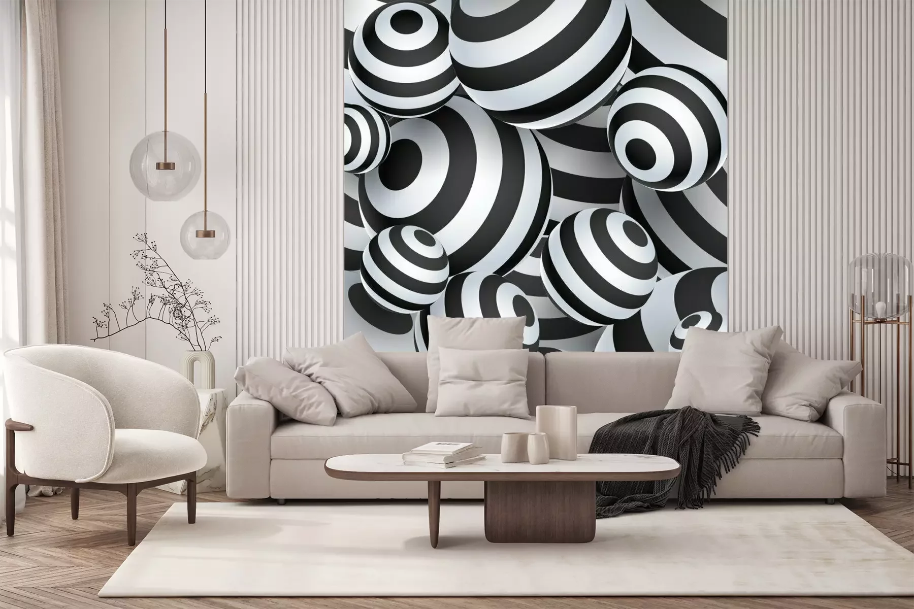 Fototapete Schwarze und weiße Kugeln