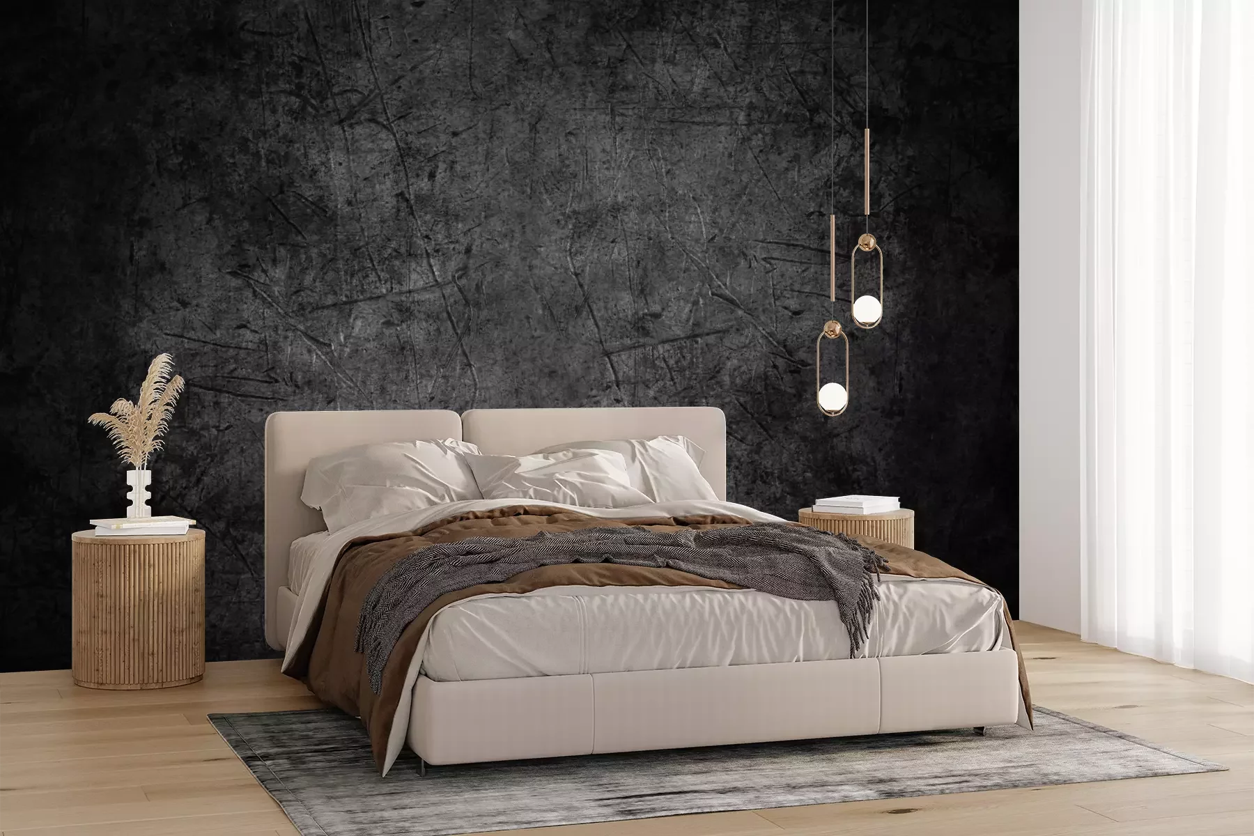 Das Material Premium+ besteht aus einer strukturierten Vinyl-Oberschicht und einem Trägermaterial (Vlies) mit einer Grammatur von 255 g/m², das kleine Unebenheiten der Wand zuverlässig kaschiert. Die feine Sandstruktur verleiht der Oberfläche eine luxuriöse Haptik, während das halbmatte Finish die Tiefe der Farben betont. Das Material ist dampfdurchlässig – so kann diese Fototapete auch in Küchen und Badezimmern eingesetzt werden. Die maximale Breite einer Tapetenbahn beträgt 100 cm. Bei größeren Abmessungen besteht die Fototapete aus mehreren gleich großen Bahnen. Der Kleber wird direkt auf die Wand aufgetragen, und die Fototapete wird auf Stoß angebracht, was für einen ästhetischen Effekt ohne sichtbare Fugen sorgt. Die Oberfläche ist pflegeleicht und kann bei Bedarf sanft mit einem feuchten Tuch abgewischt werden.