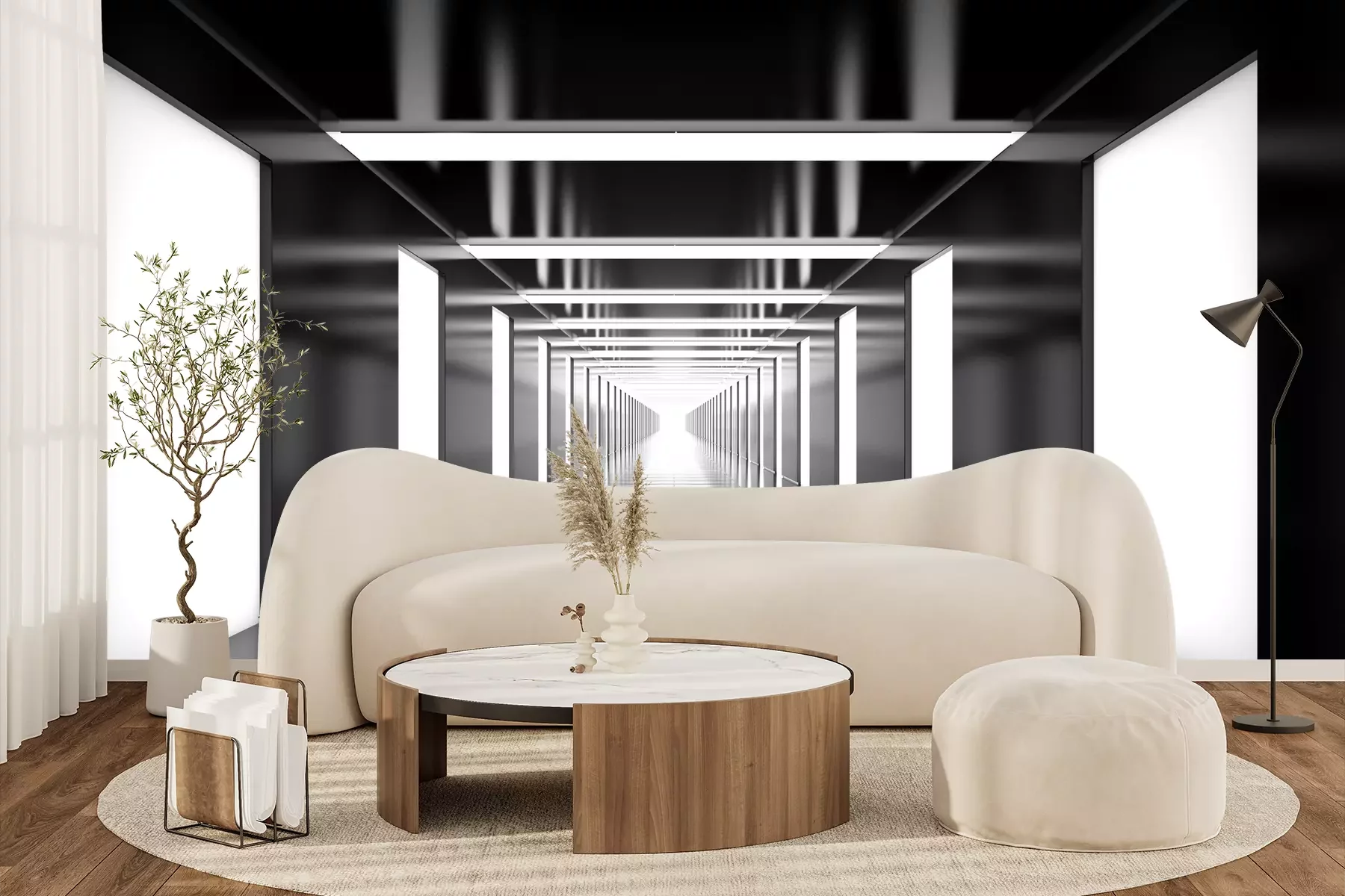 Die Fototapeten werden in Bahnen geliefert. Die Größe und die Anzahl der Bahnen, aus denen die gesamte Fototapete besteht, hängen vom gewählten Material ab. Wenn die Größe die maximale Breite des Materials überschreitet, besteht der Ausdruck aus mehreren gleich großen Bahnen.