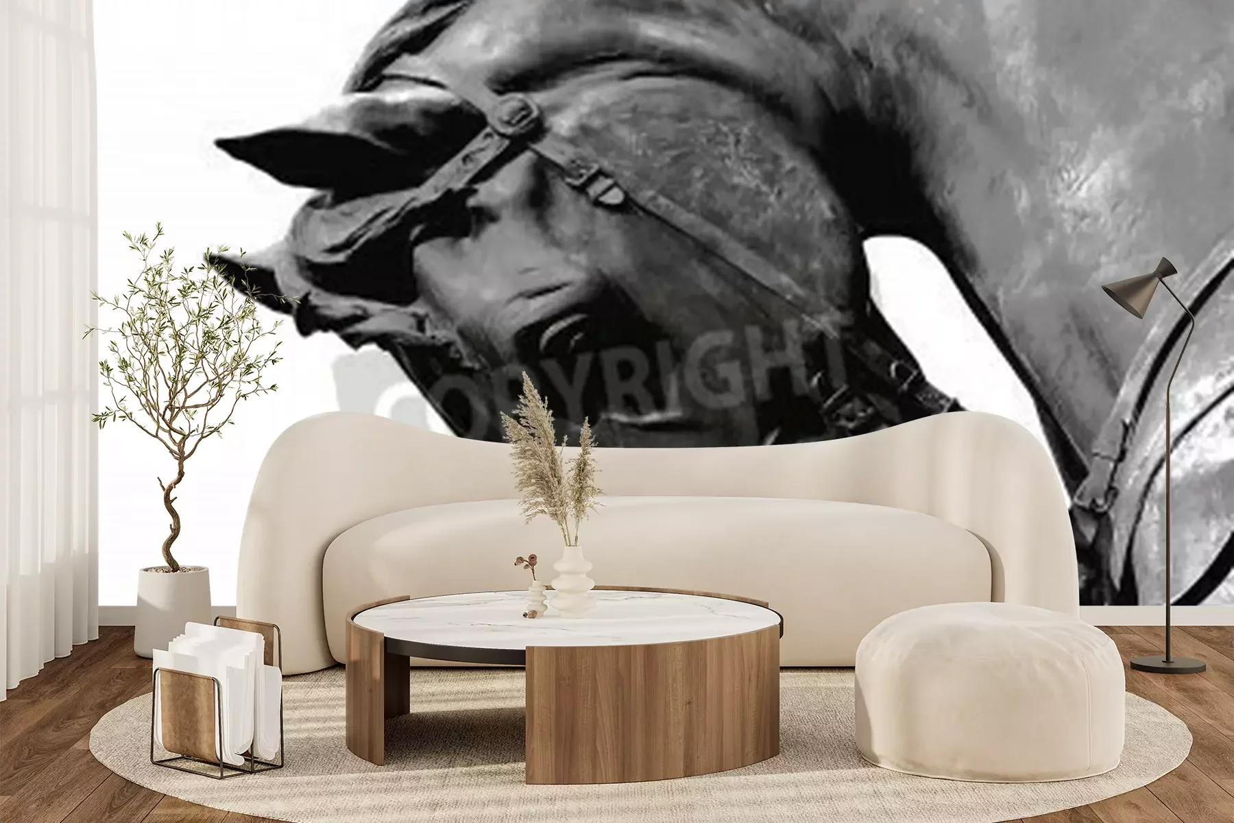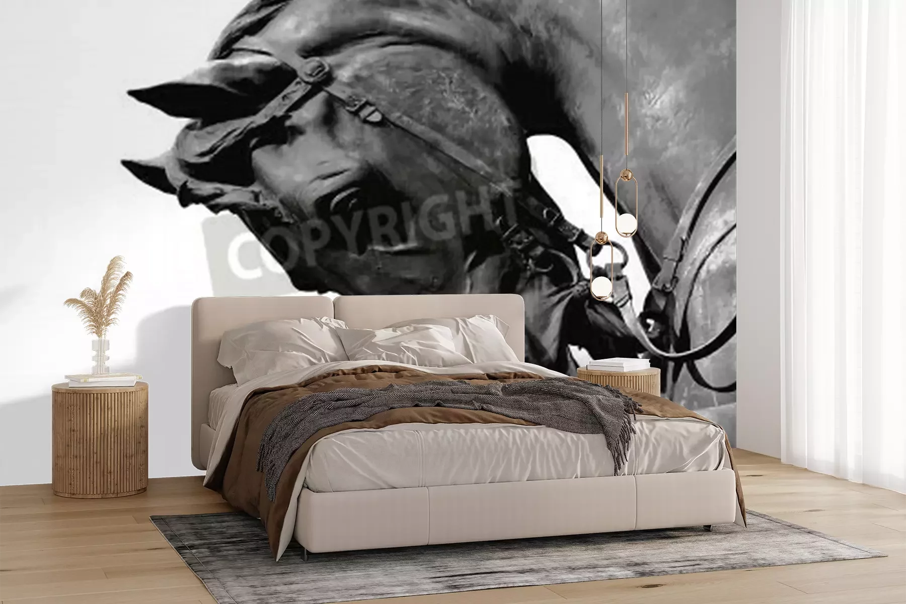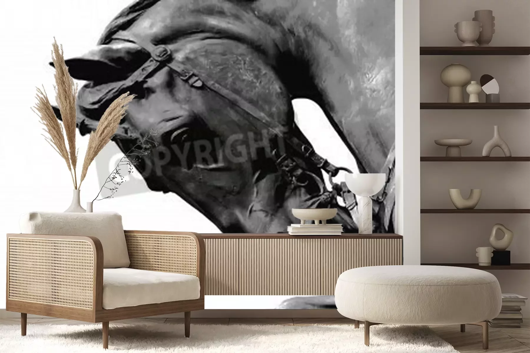 Fototapete Schwarzer hengst vor einem hellen hintergrund