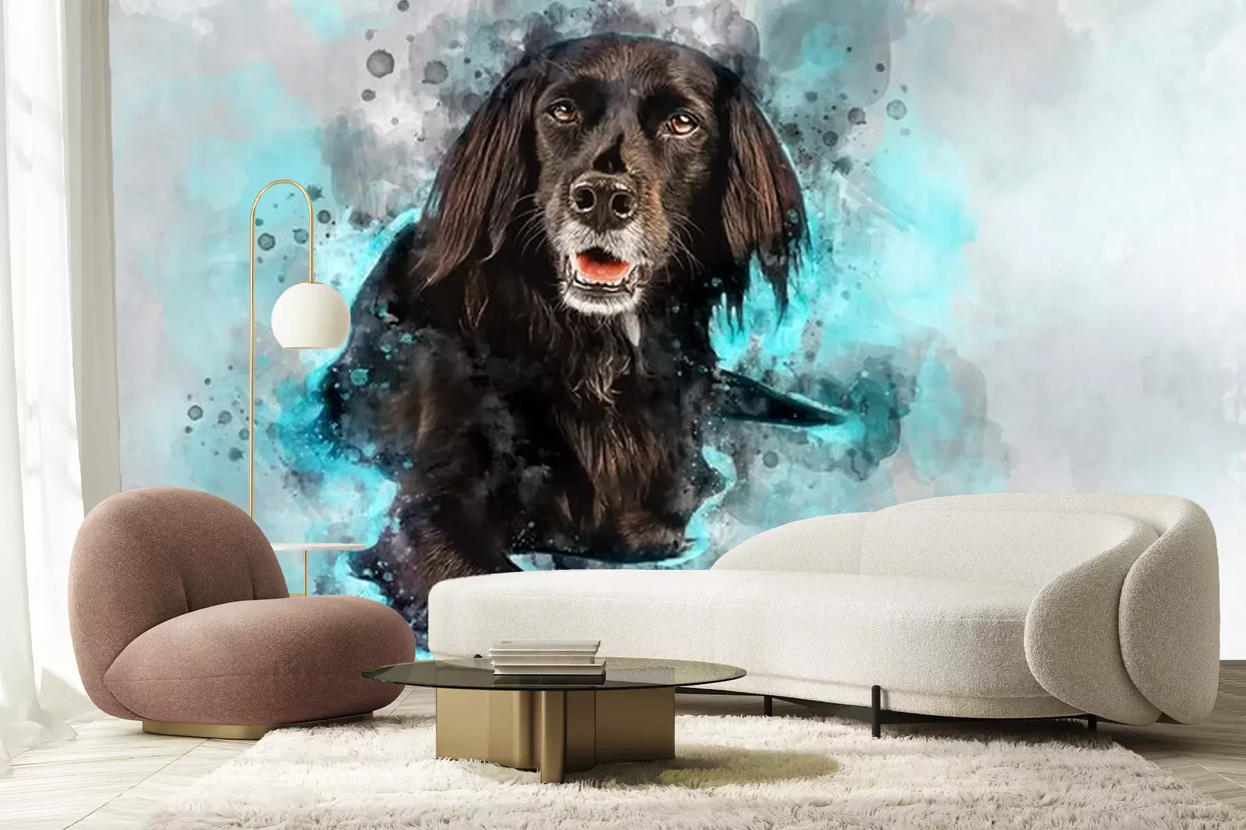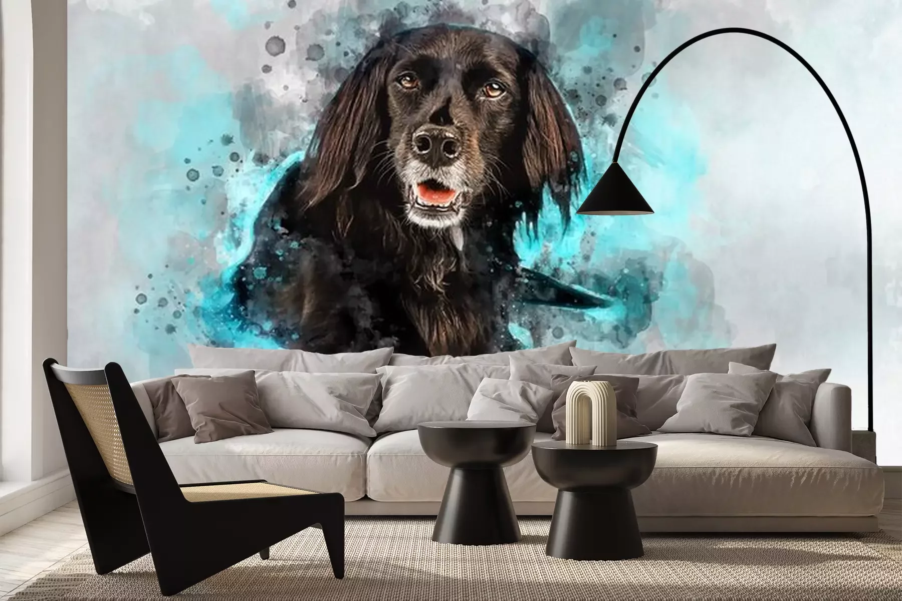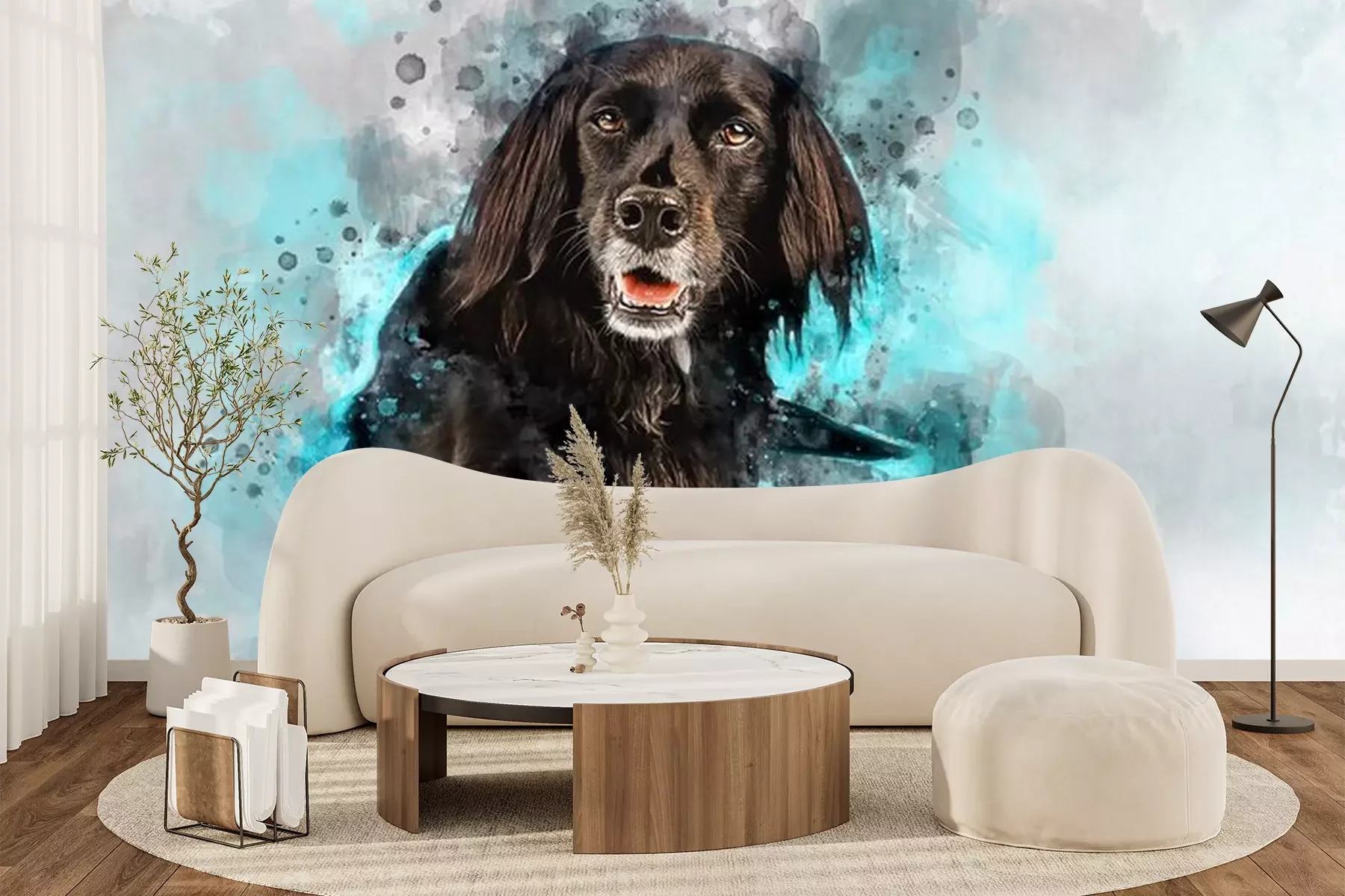 Fototapete Schwarzer Hund auf Aquarell-Hintergrund