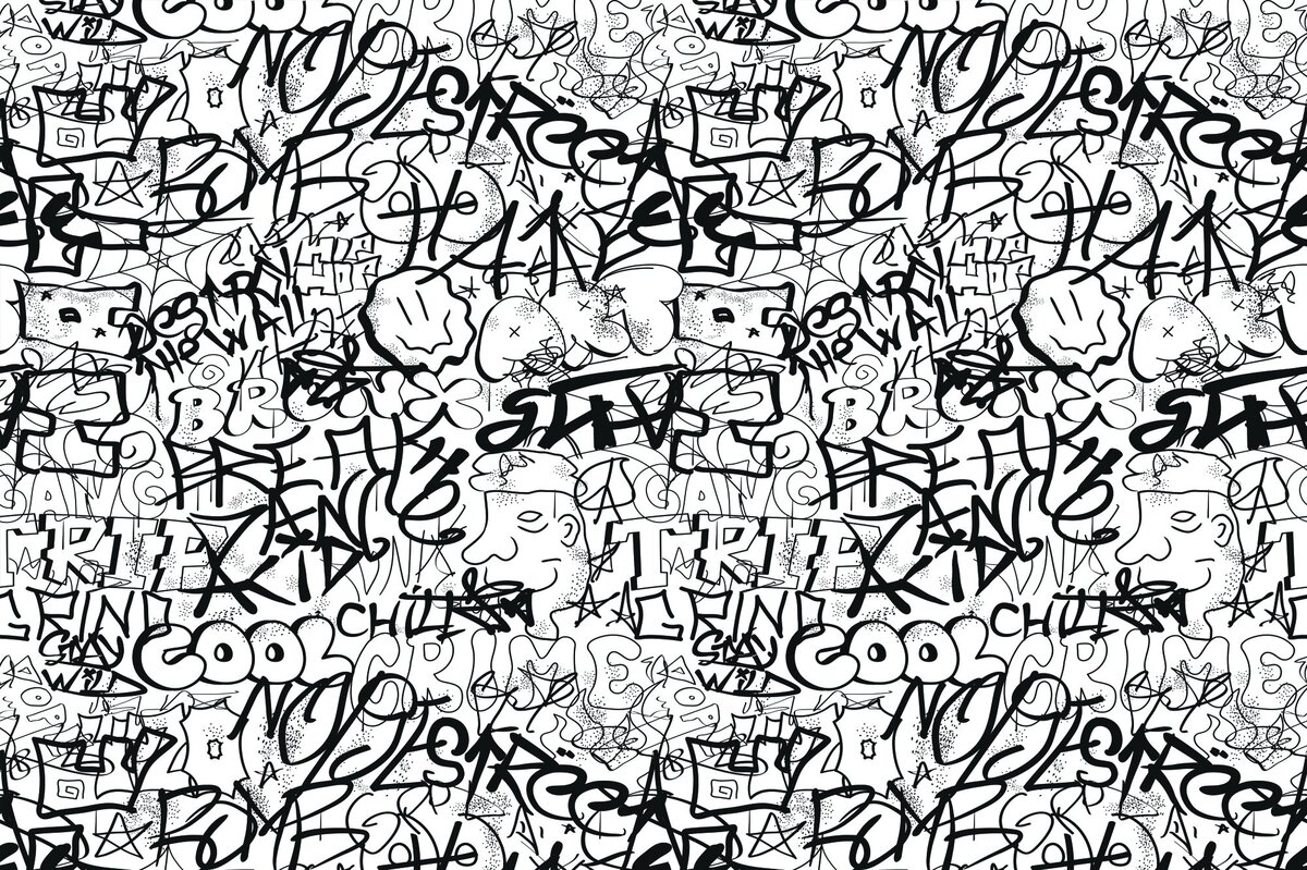Schwarzes graffiti-schriftmuster im jugendstil