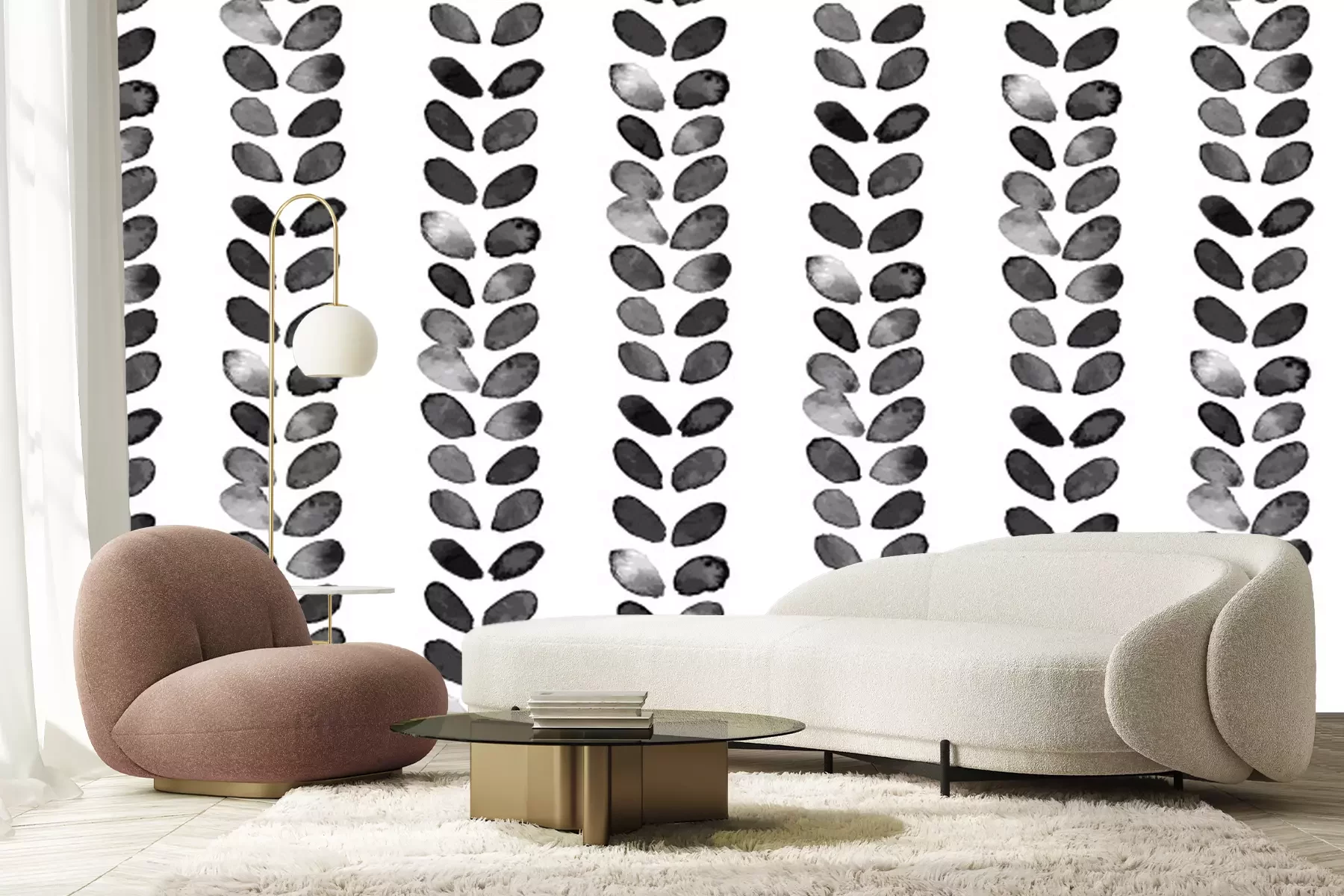 Fototapete Schwarzes Pauspapiermuster aus Blättern