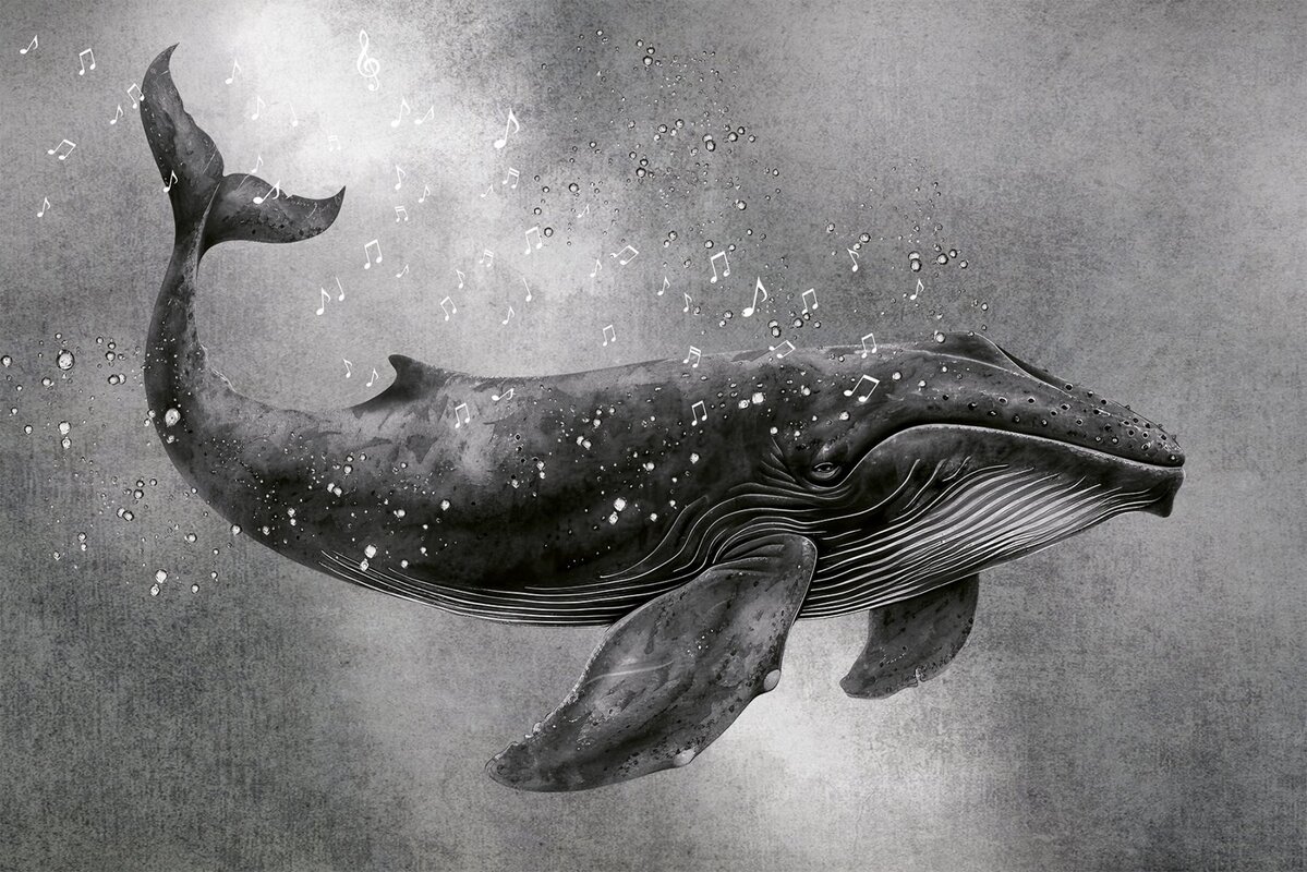 Fototapete: Schwarzweißmuster Walgesang und Musiknoten