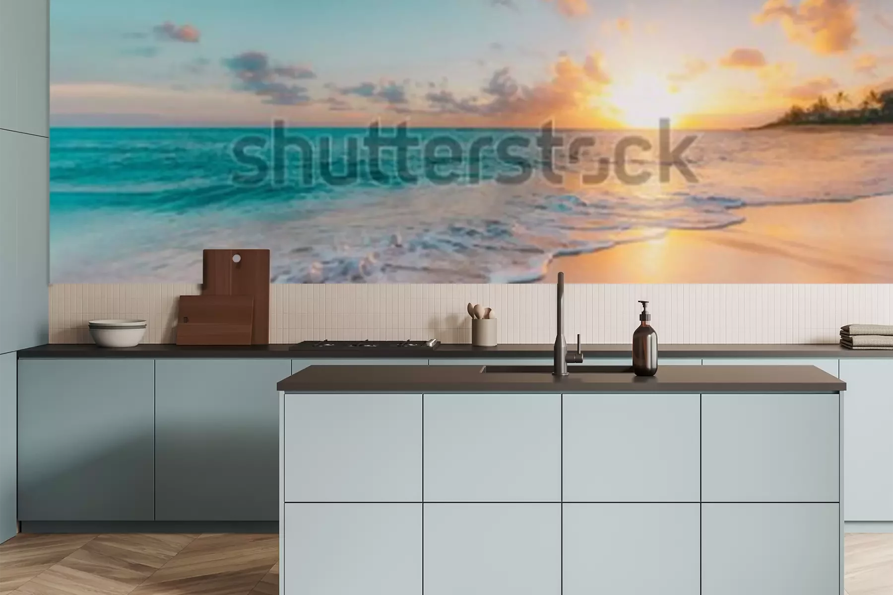 Fototapete Sea beach blue sky sand sun daylight relaxation landscape viewpoint for design postcard and calendar in thailand