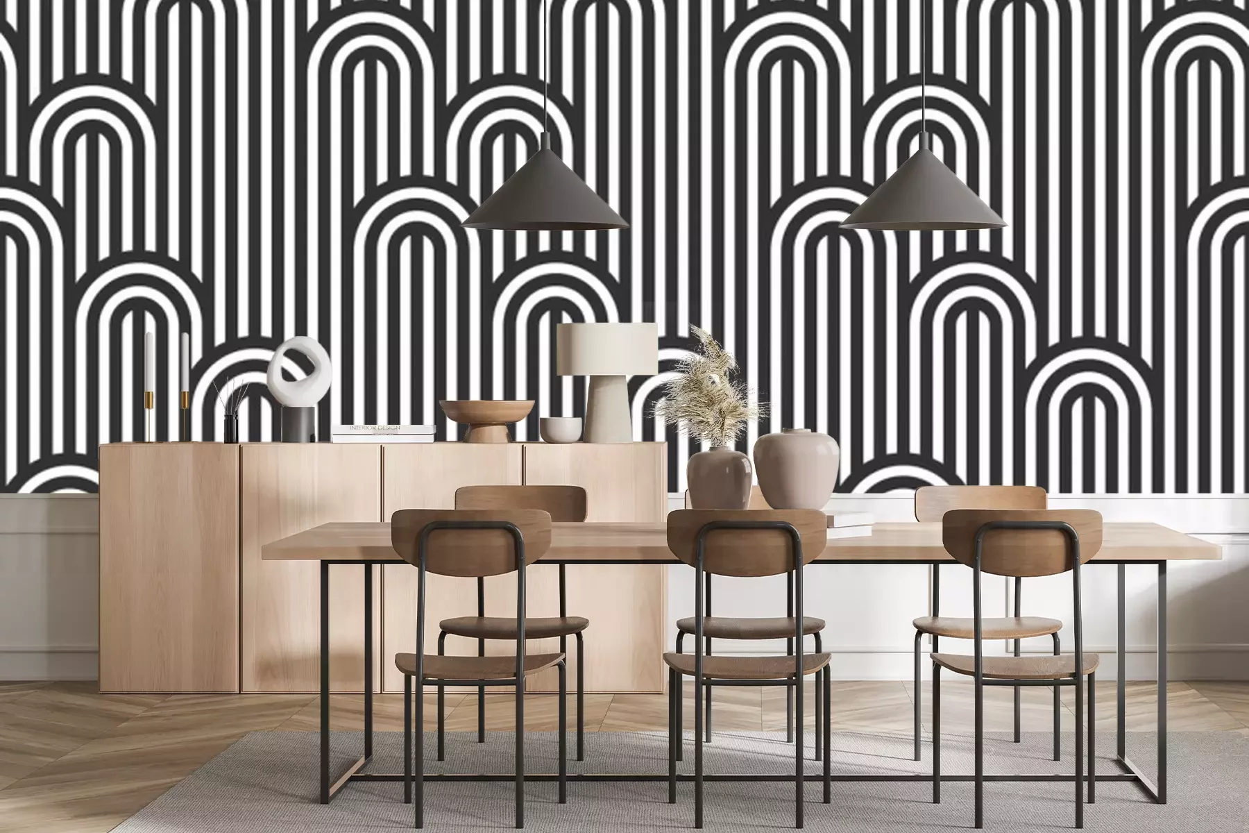 Fototapete Seamless pattern with twisted lines, vector linear tiling background, stripy weaving, optical maze, twisted stripes. Black and white design.