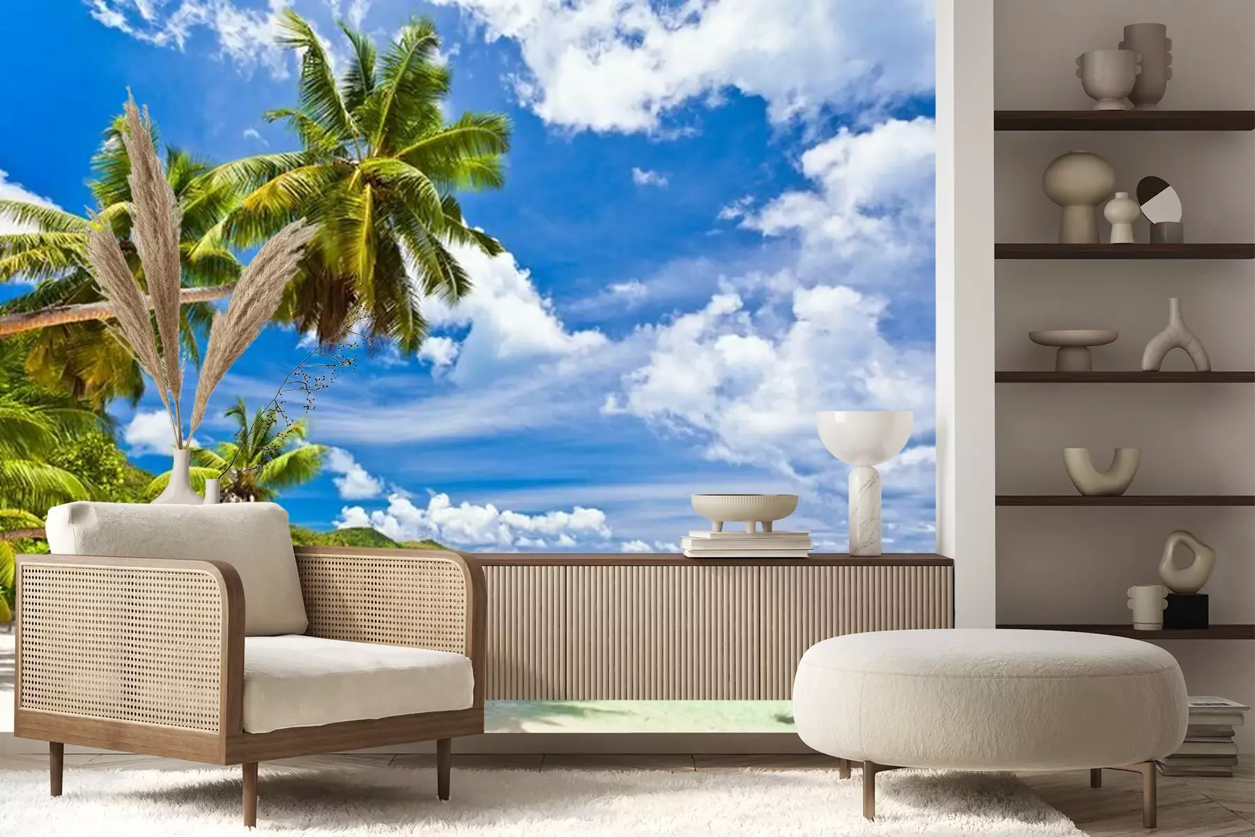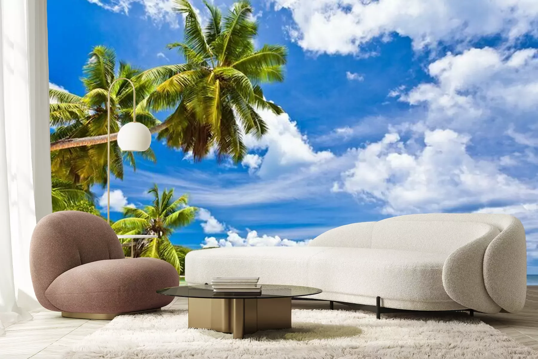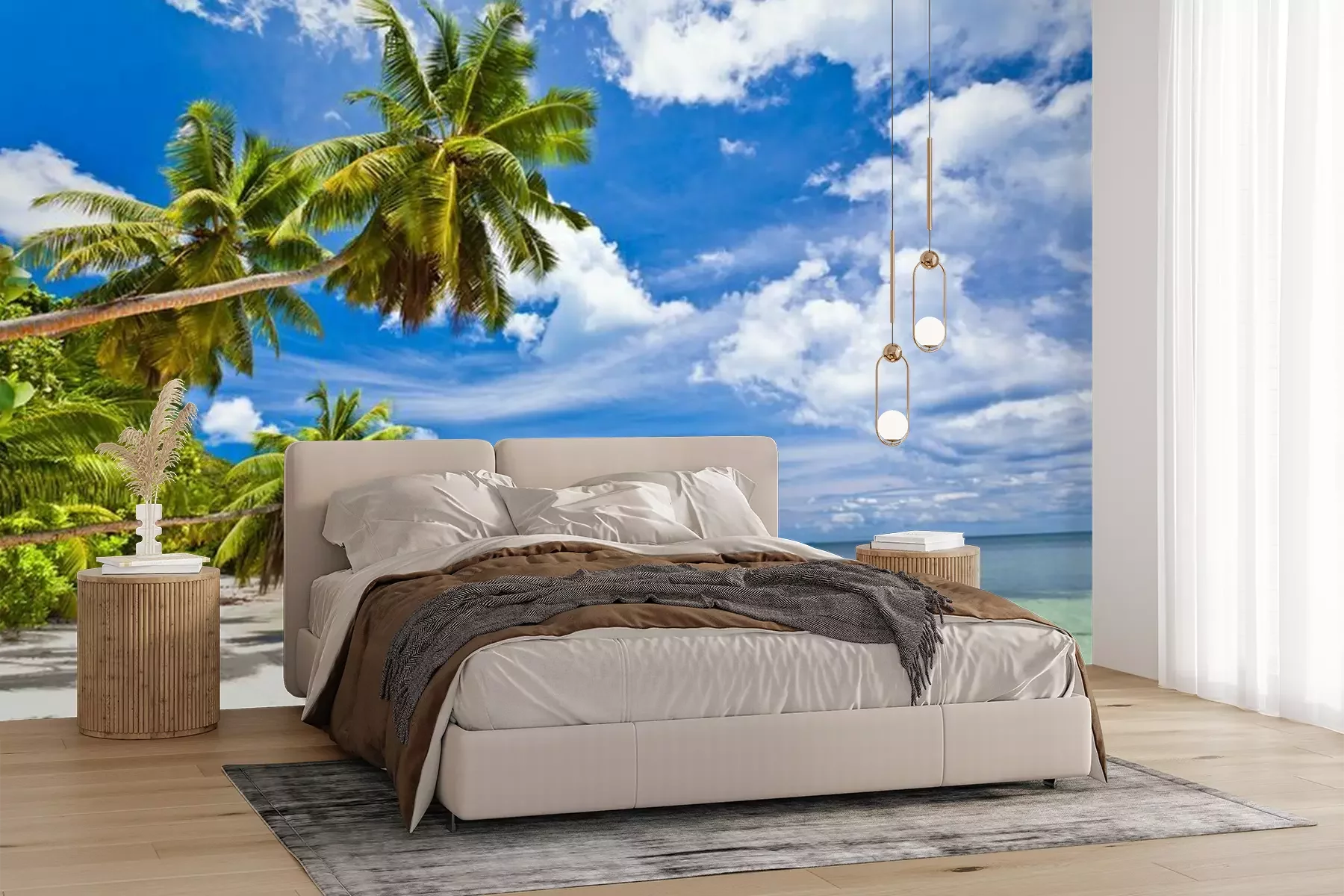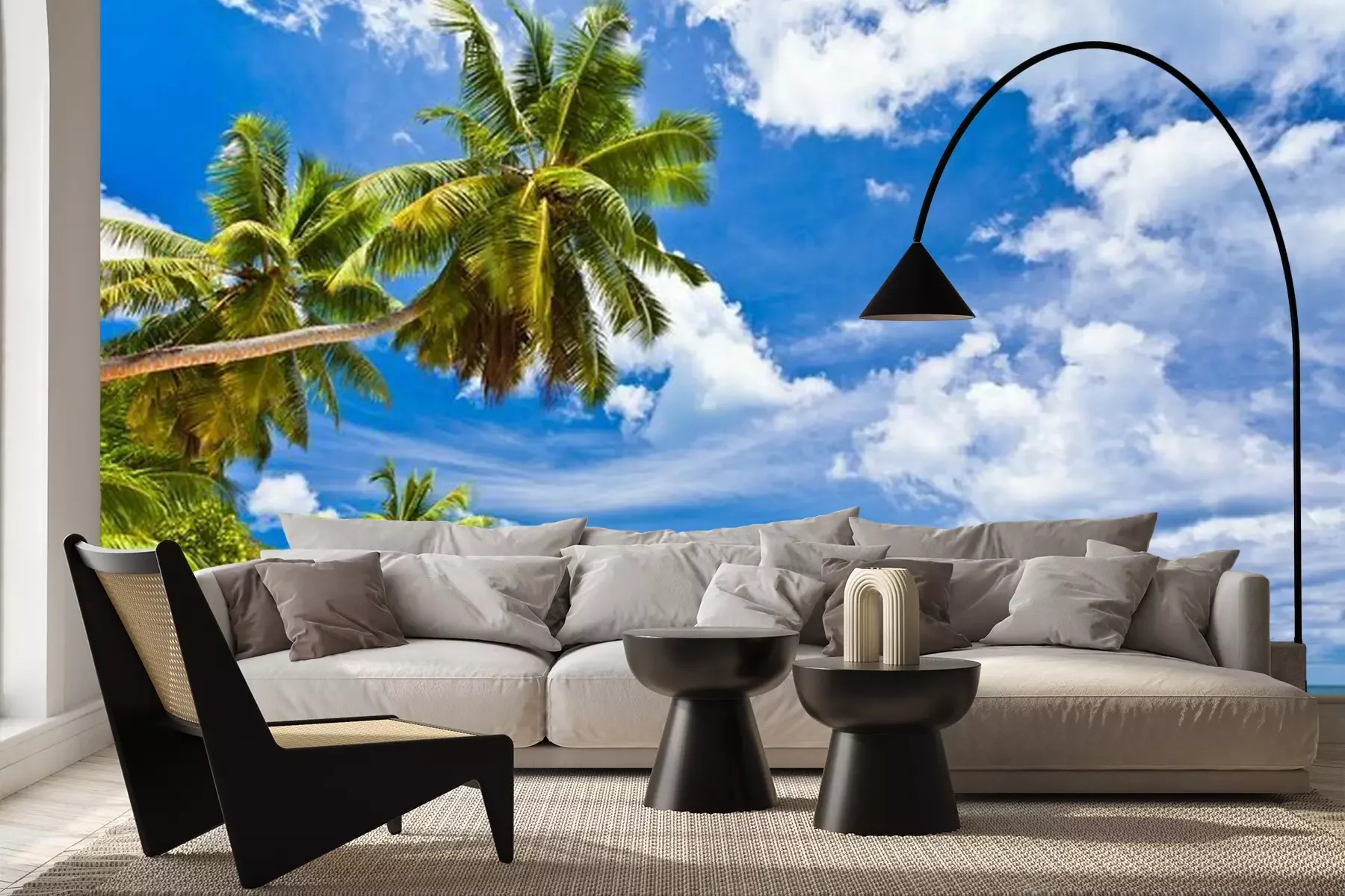 Palmen am Strand und tropisches MeerProblemlose Lieferung durch vertrauenswürdige Spediteure