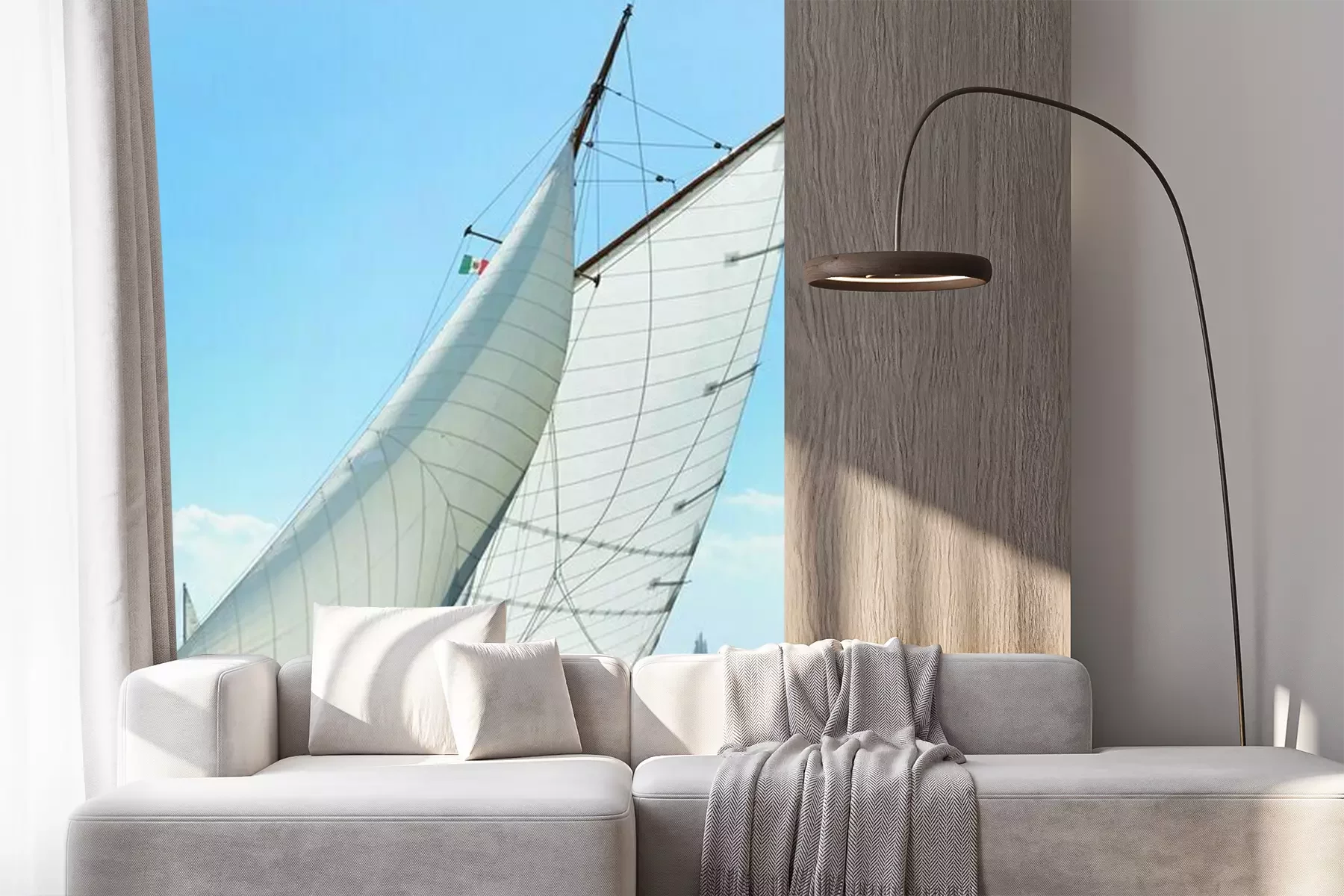 Schwimmendes Segelboot auf SeeFototapete