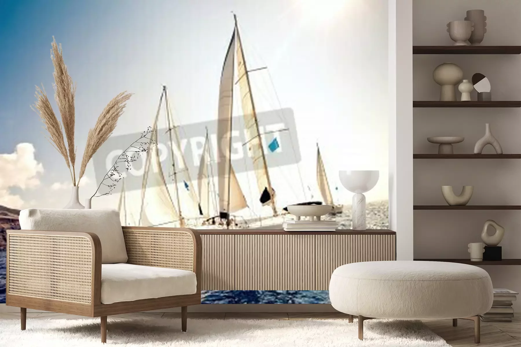 Fototapete Segelboote bei Felsen