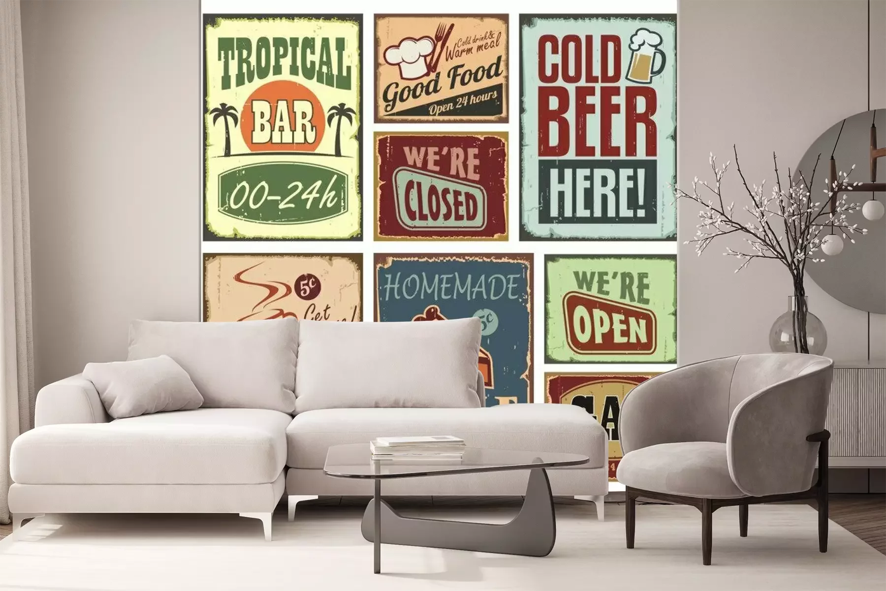 Retro-Grafiken für LebensmittelwerbungProblemlose Lieferung durch vertrauenswürdige Spediteure