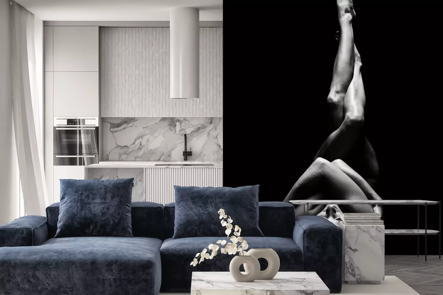 Das Material Premium+ besteht aus einer strukturierten Vinyl-Oberschicht und einem Trägermaterial (Vlies) mit einer Grammatur von 255 g/m², das kleine Unebenheiten der Wand zuverlässig kaschiert. Die feine Sandstruktur verleiht der Oberfläche eine luxuriöse Haptik, während das halbmatte Finish die Tiefe der Farben betont. Das Material ist dampfdurchlässig – so kann diese Fototapete auch in Küchen und Badezimmern eingesetzt werden. Die maximale Breite einer Tapetenbahn beträgt 100 cm. Bei größeren Abmessungen besteht die Fototapete aus mehreren gleich großen Bahnen. Der Kleber wird direkt auf die Wand aufgetragen, und die Fototapete wird auf Stoß angebracht, was für einen ästhetischen Effekt ohne sichtbare Fugen sorgt. Die Oberfläche ist pflegeleicht und kann bei Bedarf sanft mit einem feuchten Tuch abgewischt werden.
