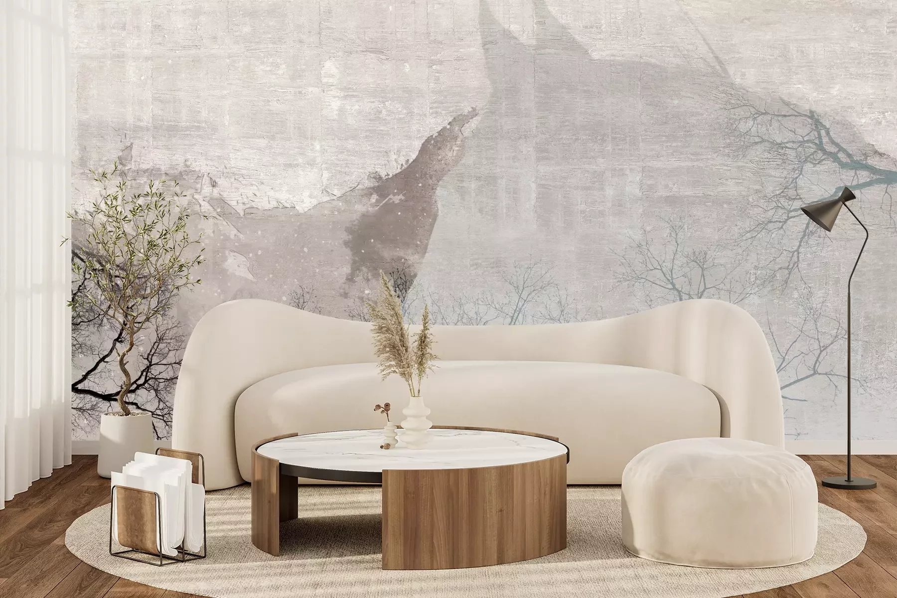 Das Material Premium+ besteht aus einer strukturierten Vinyl-Oberschicht und einem Trägermaterial (Vlies) mit einer Grammatur von 255 g/m², das kleine Unebenheiten der Wand zuverlässig kaschiert. Die feine Sandstruktur verleiht der Oberfläche eine luxuriöse Haptik, während das halbmatte Finish die Tiefe der Farben betont. Das Material ist dampfdurchlässig – so kann diese Fototapete auch in Küchen und Badezimmern eingesetzt werden. Die maximale Breite einer Tapetenbahn beträgt 100 cm. Bei größeren Abmessungen besteht die Fototapete aus mehreren gleich großen Bahnen. Der Kleber wird direkt auf die Wand aufgetragen, und die Fototapete wird auf Stoß angebracht, was für einen ästhetischen Effekt ohne sichtbare Fugen sorgt. Die Oberfläche ist pflegeleicht und kann bei Bedarf sanft mit einem feuchten Tuch abgewischt werden.
