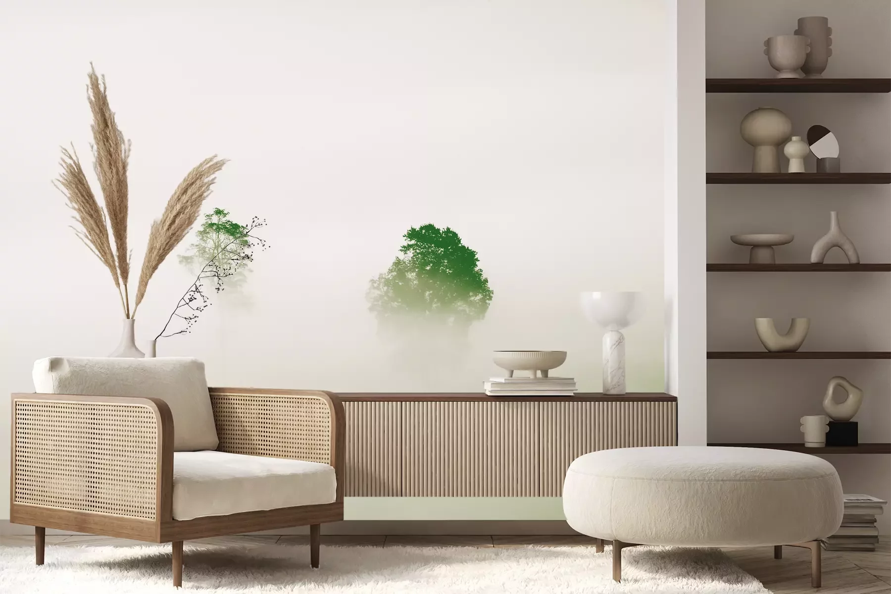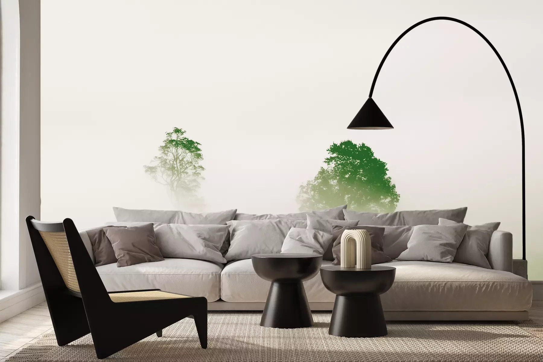 Das Material Premium+ besteht aus einer strukturierten Vinyl-Oberschicht und einem Trägermaterial (Vlies) mit einer Grammatur von 255 g/m², das kleine Unebenheiten der Wand zuverlässig kaschiert. Die feine Sandstruktur verleiht der Oberfläche eine luxuriöse Haptik, während das halbmatte Finish die Tiefe der Farben betont. Das Material ist dampfdurchlässig – so kann diese Fototapete auch in Küchen und Badezimmern eingesetzt werden. Die maximale Breite einer Tapetenbahn beträgt 100 cm. Bei größeren Abmessungen besteht die Fototapete aus mehreren gleich großen Bahnen. Der Kleber wird direkt auf die Wand aufgetragen, und die Fototapete wird auf Stoß angebracht, was für einen ästhetischen Effekt ohne sichtbare Fugen sorgt. Die Oberfläche ist pflegeleicht und kann bei Bedarf sanft mit einem feuchten Tuch abgewischt werden.