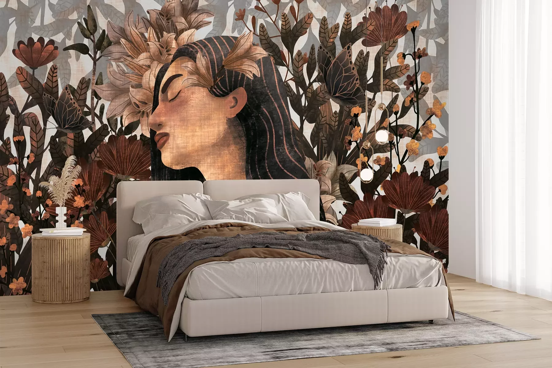 Das Material Premium+ besteht aus einer strukturierten Vinyl-Oberschicht und einem Trägermaterial (Vlies) mit einer Grammatur von 255 g/m², das kleine Unebenheiten der Wand zuverlässig kaschiert. Die feine Sandstruktur verleiht der Oberfläche eine luxuriöse Haptik, während das halbmatte Finish die Tiefe der Farben betont. Das Material ist dampfdurchlässig – so kann diese Fototapete auch in Küchen und Badezimmern eingesetzt werden. Die maximale Breite einer Tapetenbahn beträgt 100 cm. Bei größeren Abmessungen besteht die Fototapete aus mehreren gleich großen Bahnen. Der Kleber wird direkt auf die Wand aufgetragen, und die Fototapete wird auf Stoß angebracht, was für einen ästhetischen Effekt ohne sichtbare Fugen sorgt. Die Oberfläche ist pflegeleicht und kann bei Bedarf sanft mit einem feuchten Tuch abgewischt werden.