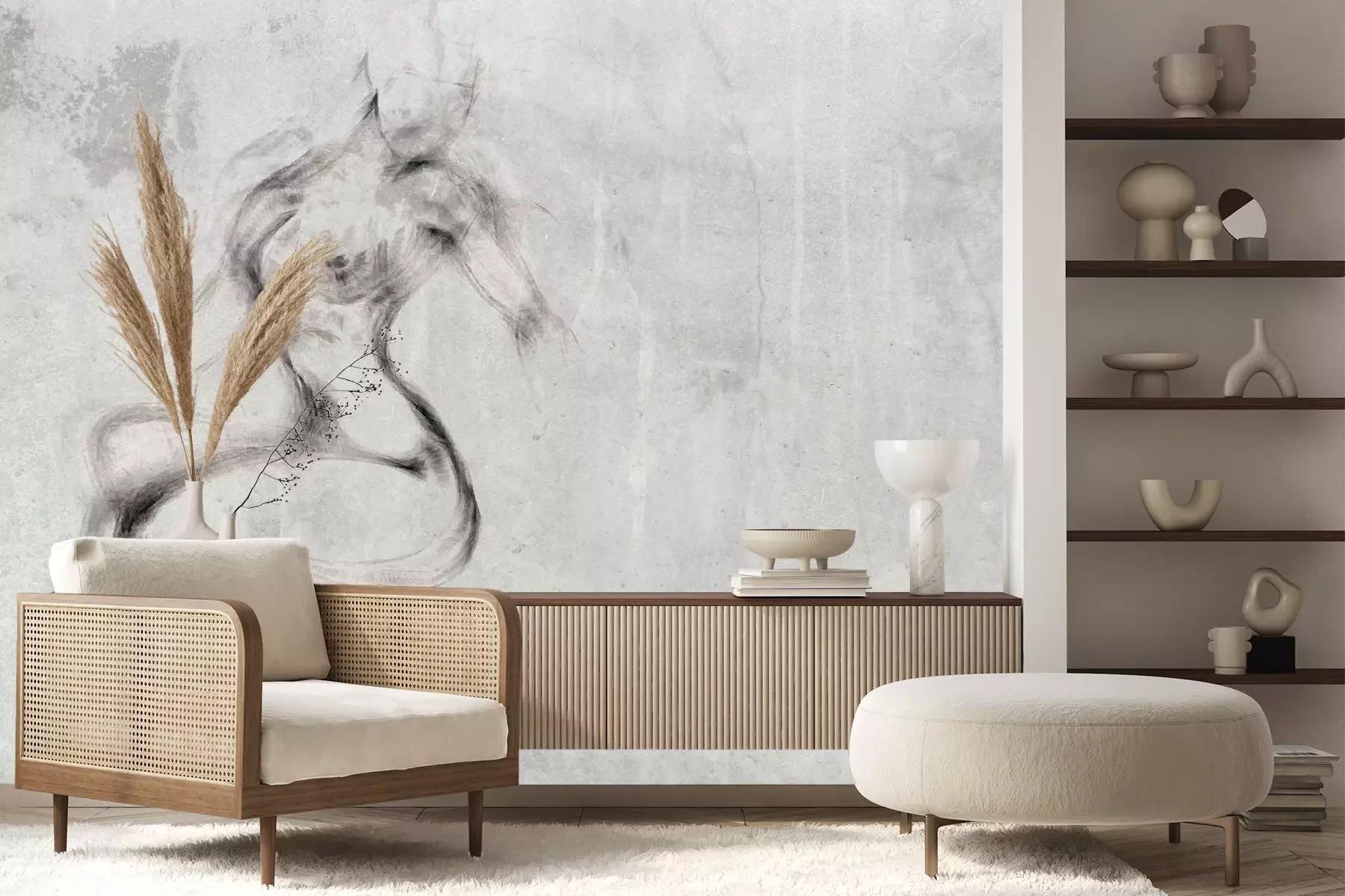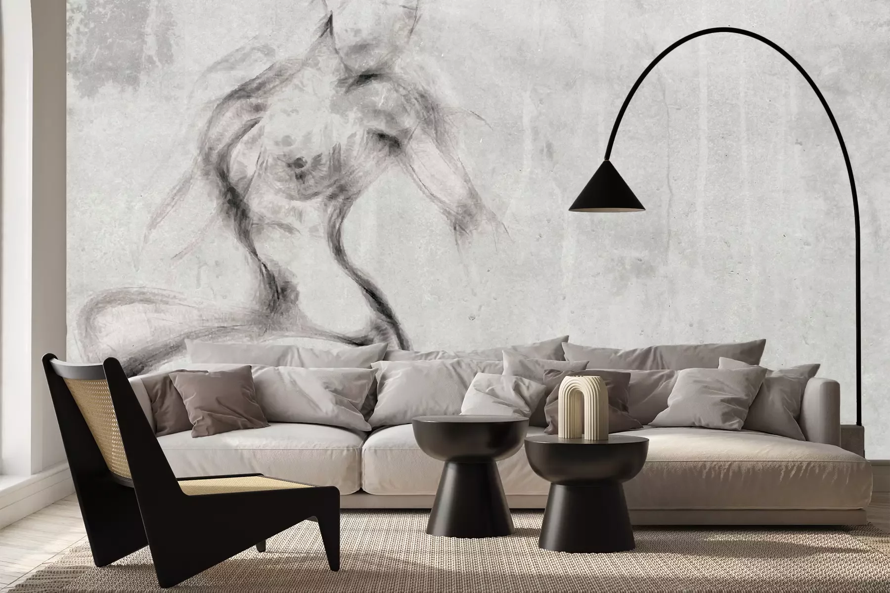 Das Material Premium+ besteht aus einer strukturierten Vinyl-Oberschicht und einem Trägermaterial (Vlies) mit einer Grammatur von 255 g/m², das kleine Unebenheiten der Wand zuverlässig kaschiert. Die feine Sandstruktur verleiht der Oberfläche eine luxuriöse Haptik, während das halbmatte Finish die Tiefe der Farben betont. Das Material ist dampfdurchlässig – so kann diese Fototapete auch in Küchen und Badezimmern eingesetzt werden. Die maximale Breite einer Tapetenbahn beträgt 100 cm. Bei größeren Abmessungen besteht die Fototapete aus mehreren gleich großen Bahnen. Der Kleber wird direkt auf die Wand aufgetragen, und die Fototapete wird auf Stoß angebracht, was für einen ästhetischen Effekt ohne sichtbare Fugen sorgt. Die Oberfläche ist pflegeleicht und kann bei Bedarf sanft mit einem feuchten Tuch abgewischt werden.