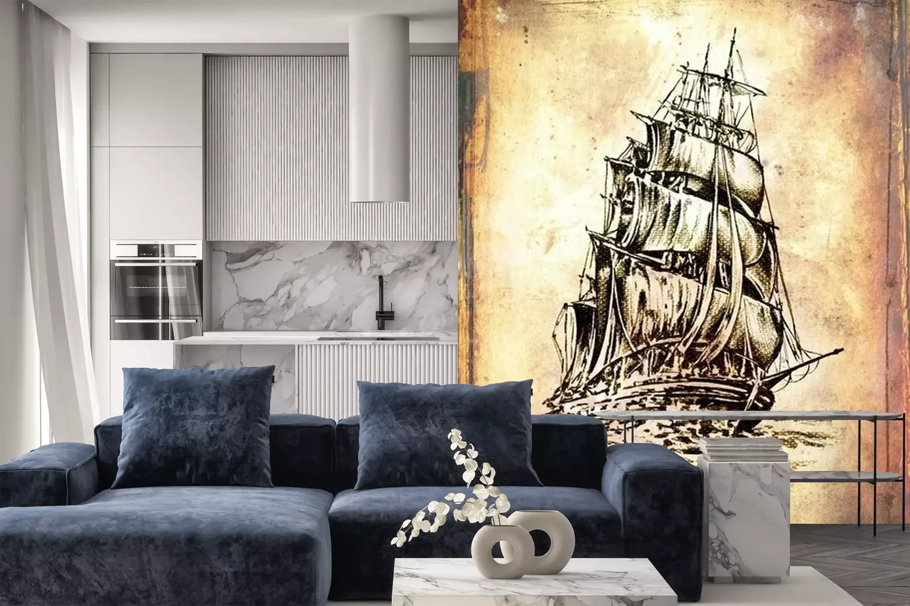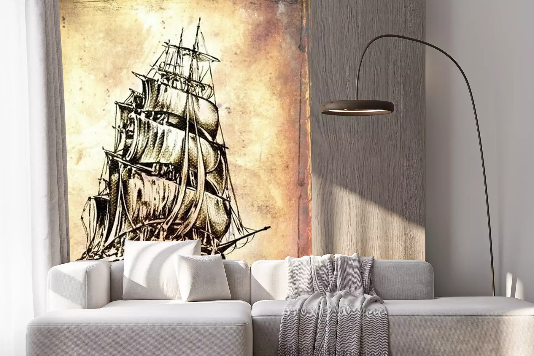 Zeichnung mit Schiffsmotiv VintageProblemlose Lieferung durch vertrauenswürdige Spediteure