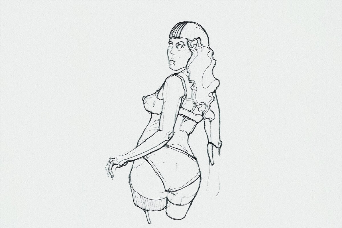 Fototapete: Skizze einer attraktiven Frau in Unterwäsche