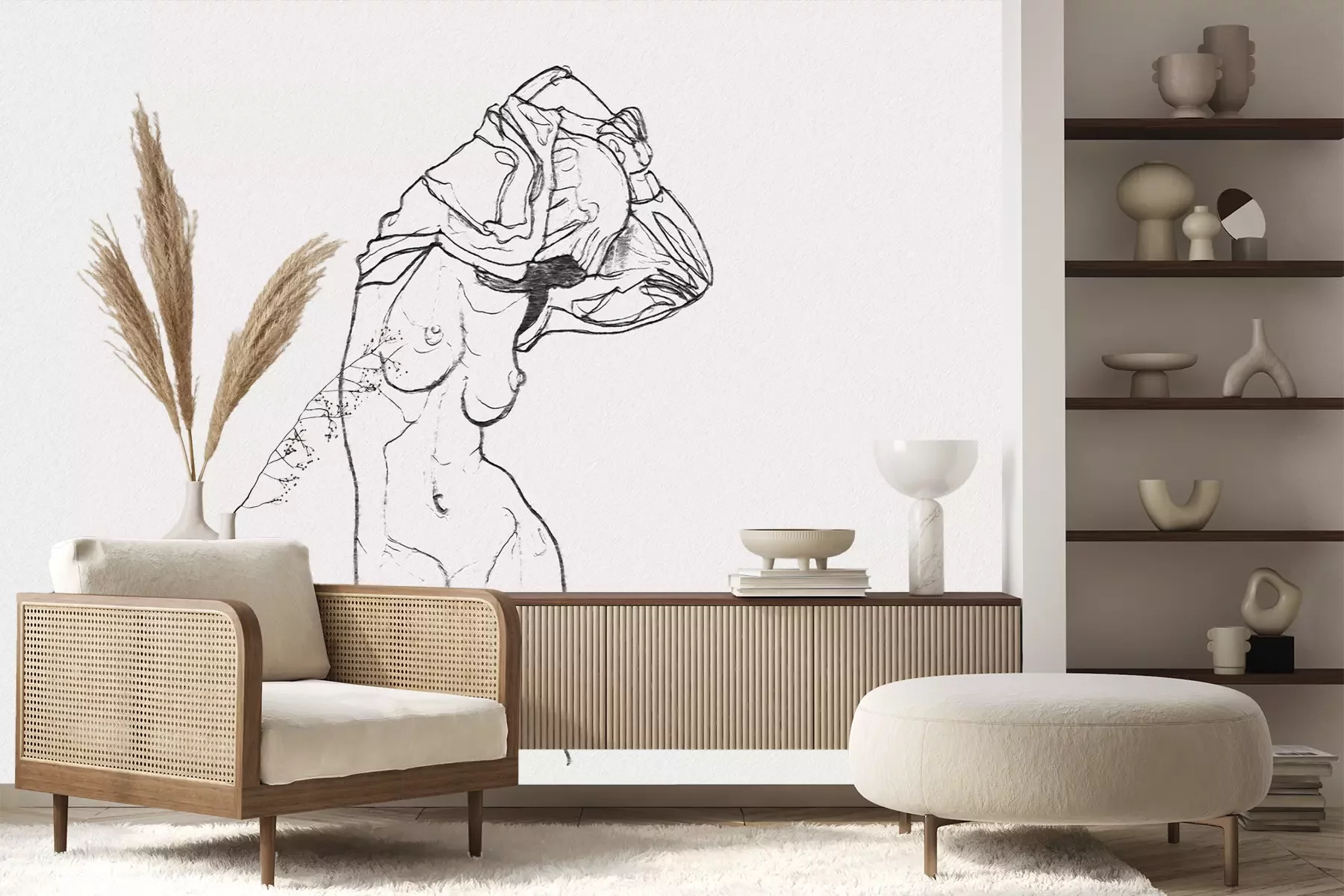 Das Material Premium+ besteht aus einer strukturierten Vinyl-Oberschicht und einem Trägermaterial (Vlies) mit einer Grammatur von 255 g/m², das kleine Unebenheiten der Wand zuverlässig kaschiert. Die feine Sandstruktur verleiht der Oberfläche eine luxuriöse Haptik, während das halbmatte Finish die Tiefe der Farben betont. Das Material ist dampfdurchlässig – so kann diese Fototapete auch in Küchen und Badezimmern eingesetzt werden. Die maximale Breite einer Tapetenbahn beträgt 100 cm. Bei größeren Abmessungen besteht die Fototapete aus mehreren gleich großen Bahnen. Der Kleber wird direkt auf die Wand aufgetragen, und die Fototapete wird auf Stoß angebracht, was für einen ästhetischen Effekt ohne sichtbare Fugen sorgt. Die Oberfläche ist pflegeleicht und kann bei Bedarf sanft mit einem feuchten Tuch abgewischt werden.