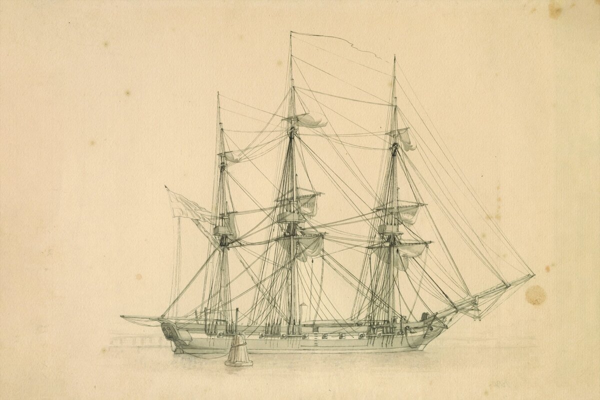 Fototapete: Skizze eines Segelschiffs auf einer Textur