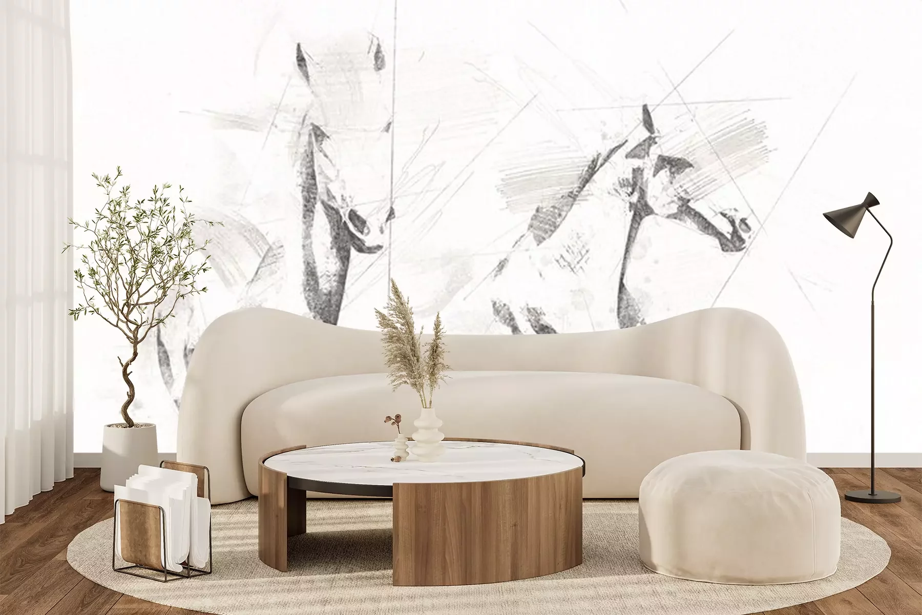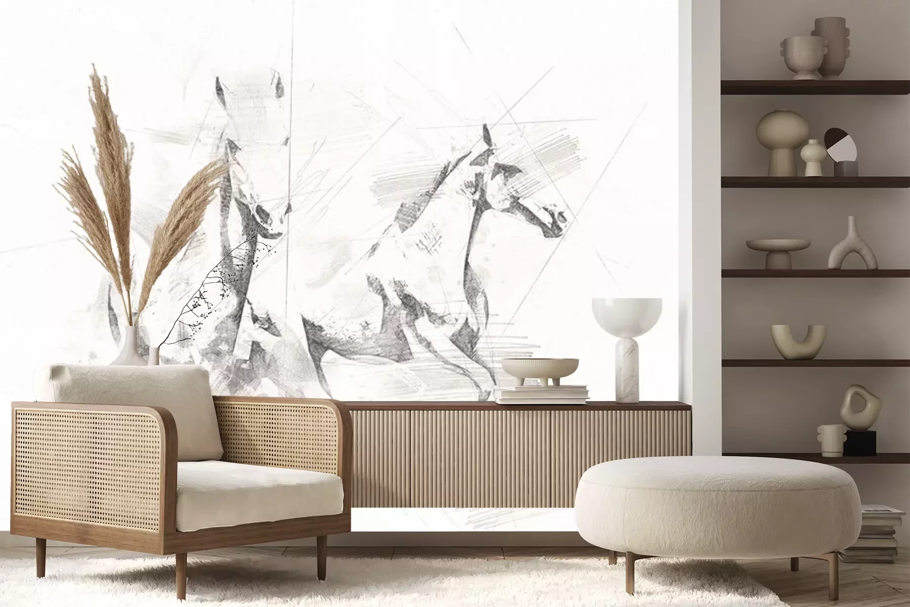 Fototapete Skizze von laufenden Pferden