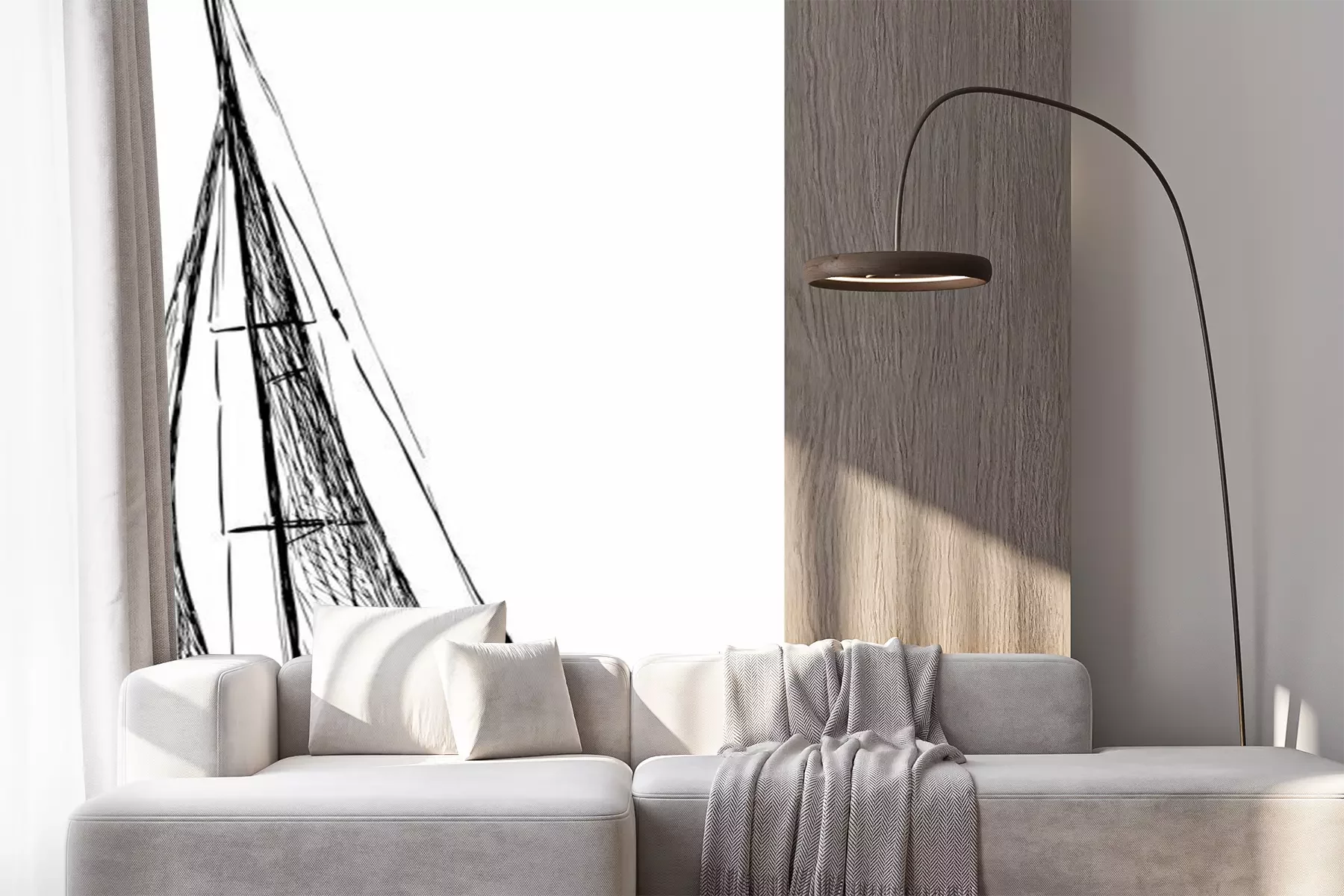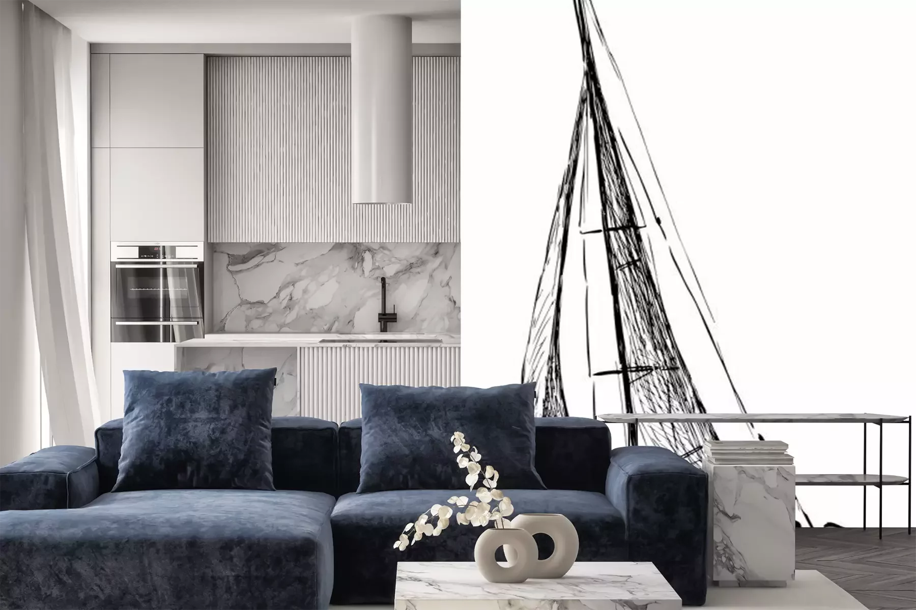 Fototapete Skizziertes schwarz-weißes Segelboot