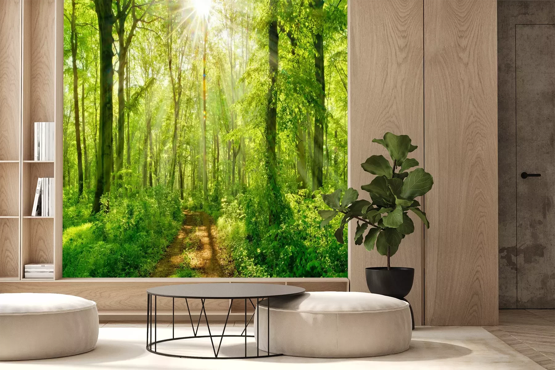 Das Material Premium+ besteht aus einer strukturierten Vinyl-Oberschicht und einem Trägermaterial (Vlies) mit einer Grammatur von 255 g/m², das kleine Unebenheiten der Wand zuverlässig kaschiert. Die feine Sandstruktur verleiht der Oberfläche eine luxuriöse Haptik, während das halbmatte Finish die Tiefe der Farben betont. Das Material ist dampfdurchlässig – so kann diese Fototapete auch in Küchen und Badezimmern eingesetzt werden. Die maximale Breite einer Tapetenbahn beträgt 100 cm. Bei größeren Abmessungen besteht die Fototapete aus mehreren gleich großen Bahnen. Der Kleber wird direkt auf die Wand aufgetragen, und die Fototapete wird auf Stoß angebracht, was für einen ästhetischen Effekt ohne sichtbare Fugen sorgt. Die Oberfläche ist pflegeleicht und kann bei Bedarf sanft mit einem feuchten Tuch abgewischt werden.