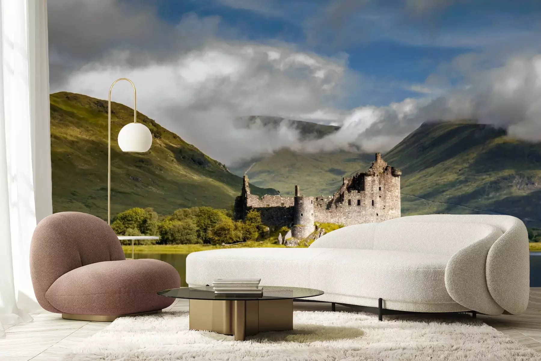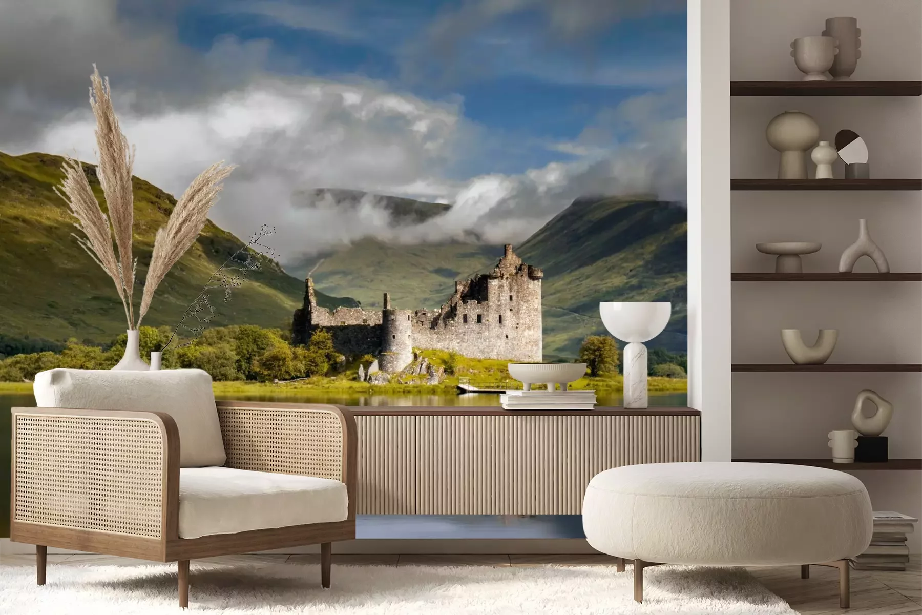 Schloss in Schottland grüne LandschaftFototapete