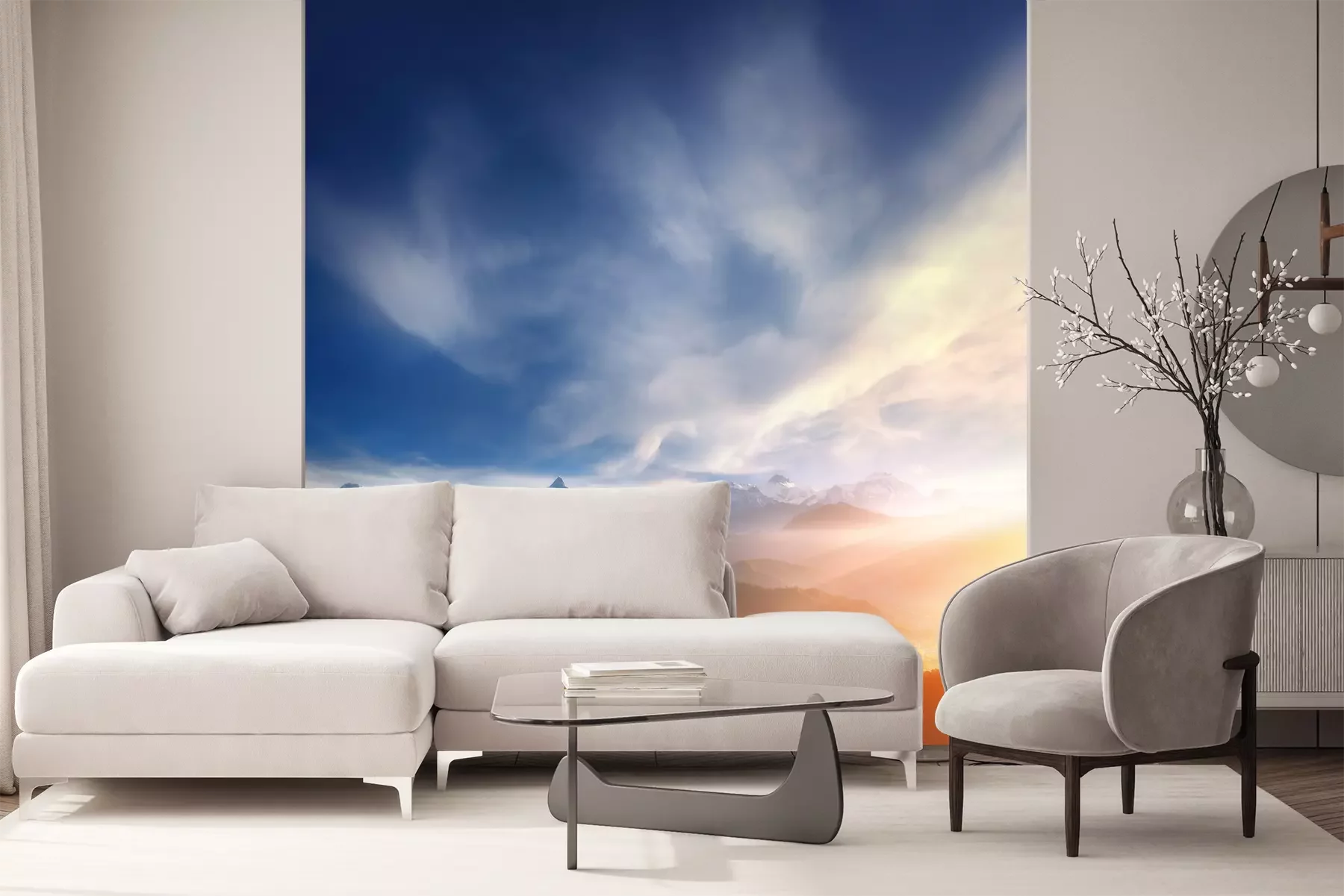 Das Material Premium+ besteht aus einer strukturierten Vinyl-Oberschicht und einem Trägermaterial (Vlies) mit einer Grammatur von 255 g/m², das kleine Unebenheiten der Wand zuverlässig kaschiert. Die feine Sandstruktur verleiht der Oberfläche eine luxuriöse Haptik, während das halbmatte Finish die Tiefe der Farben betont. Das Material ist dampfdurchlässig – so kann diese Fototapete auch in Küchen und Badezimmern eingesetzt werden. Die maximale Breite einer Tapetenbahn beträgt 100 cm. Bei größeren Abmessungen besteht die Fototapete aus mehreren gleich großen Bahnen. Der Kleber wird direkt auf die Wand aufgetragen, und die Fototapete wird auf Stoß angebracht, was für einen ästhetischen Effekt ohne sichtbare Fugen sorgt. Die Oberfläche ist pflegeleicht und kann bei Bedarf sanft mit einem feuchten Tuch abgewischt werden.