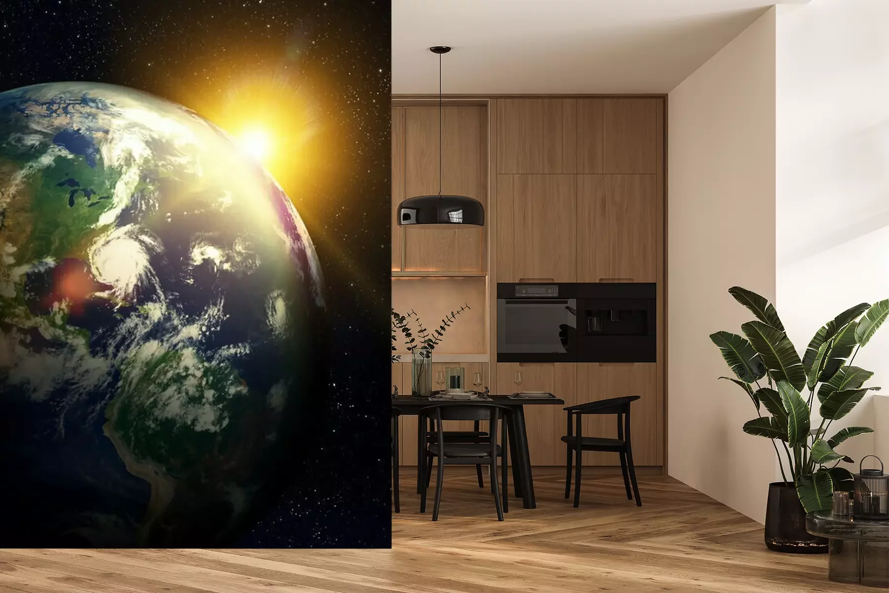 Das Material Premium+ besteht aus einer strukturierten Vinyl-Oberschicht und einem Trägermaterial (Vlies) mit einer Grammatur von 255 g/m², das kleine Unebenheiten der Wand zuverlässig kaschiert. Die feine Sandstruktur verleiht der Oberfläche eine luxuriöse Haptik, während das halbmatte Finish die Tiefe der Farben betont. Das Material ist dampfdurchlässig – so kann diese Fototapete auch in Küchen und Badezimmern eingesetzt werden. Die maximale Breite einer Tapetenbahn beträgt 100 cm. Bei größeren Abmessungen besteht die Fototapete aus mehreren gleich großen Bahnen. Der Kleber wird direkt auf die Wand aufgetragen, und die Fototapete wird auf Stoß angebracht, was für einen ästhetischen Effekt ohne sichtbare Fugen sorgt. Die Oberfläche ist pflegeleicht und kann bei Bedarf sanft mit einem feuchten Tuch abgewischt werden.