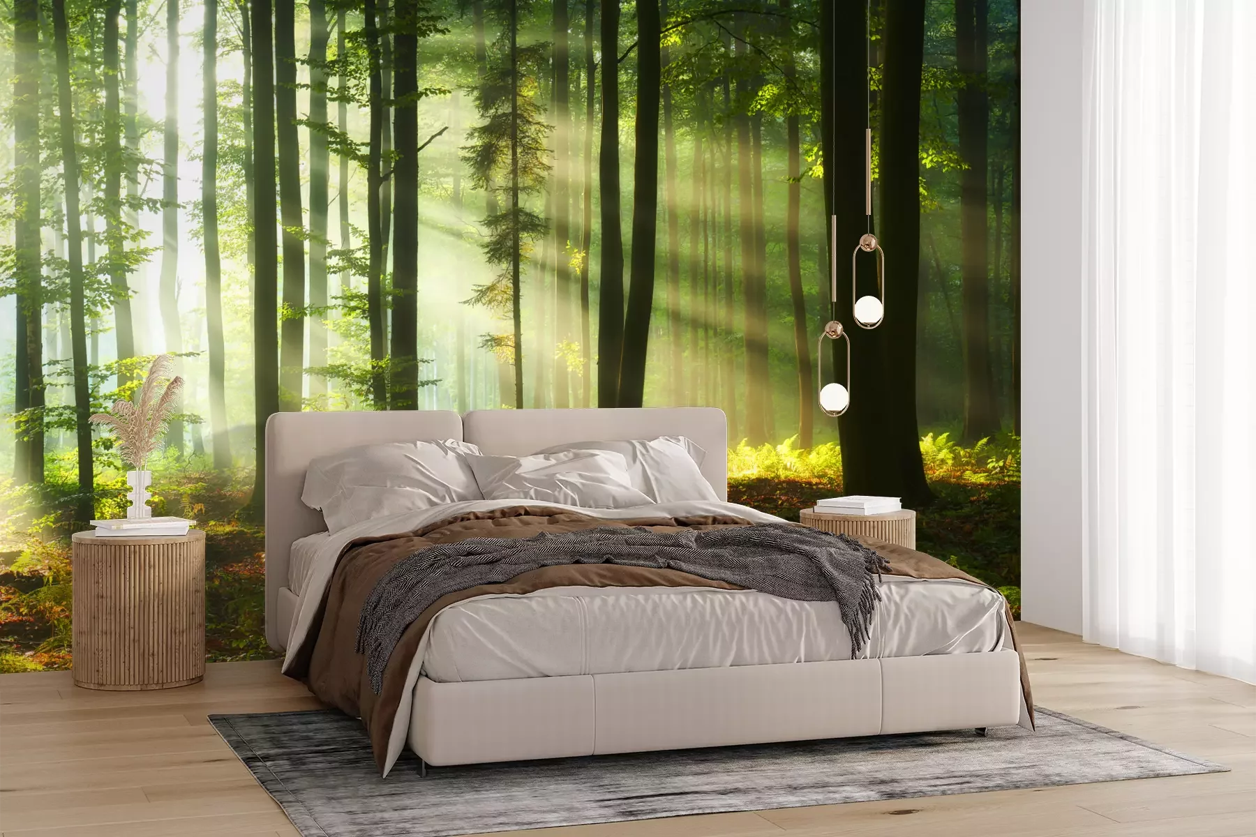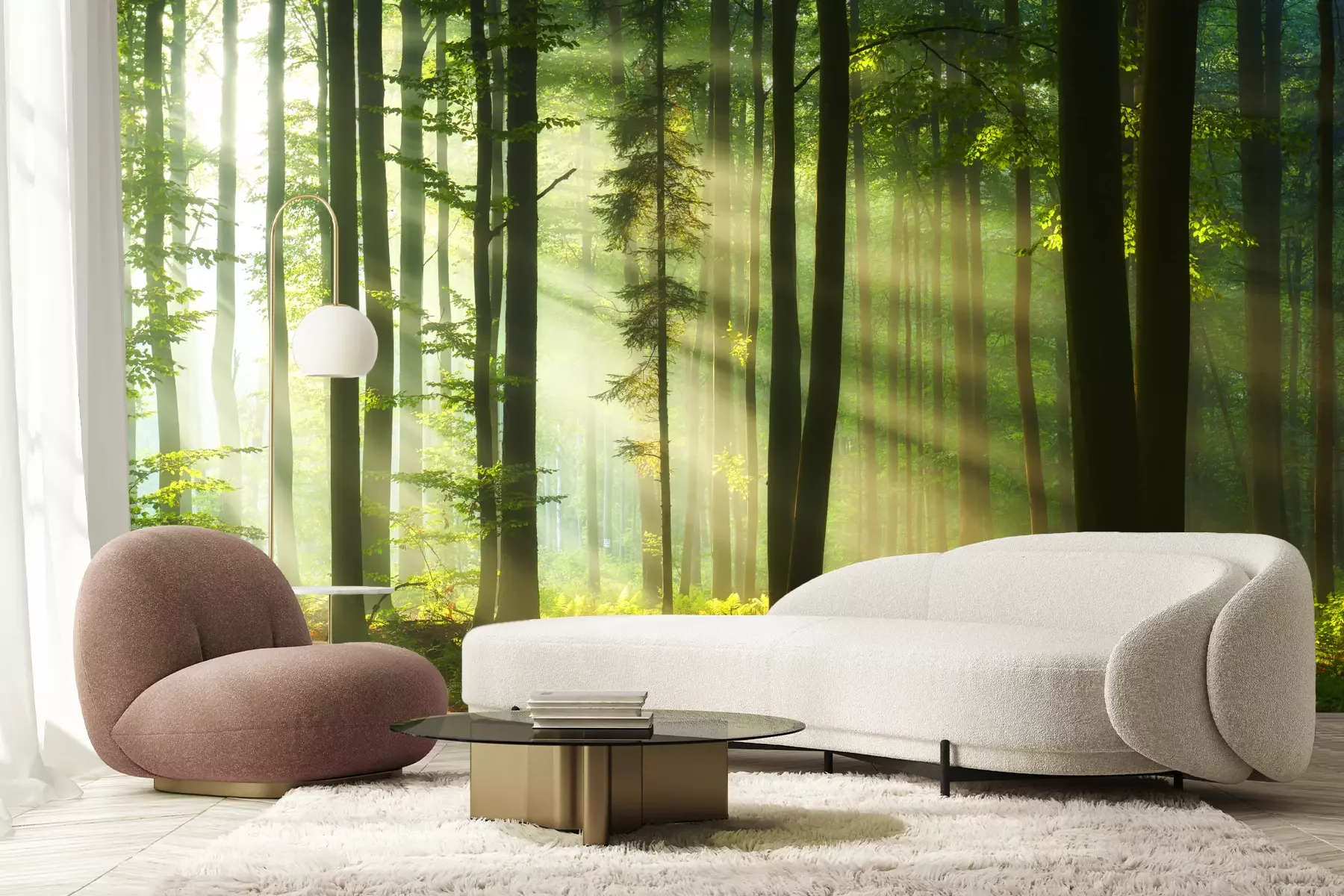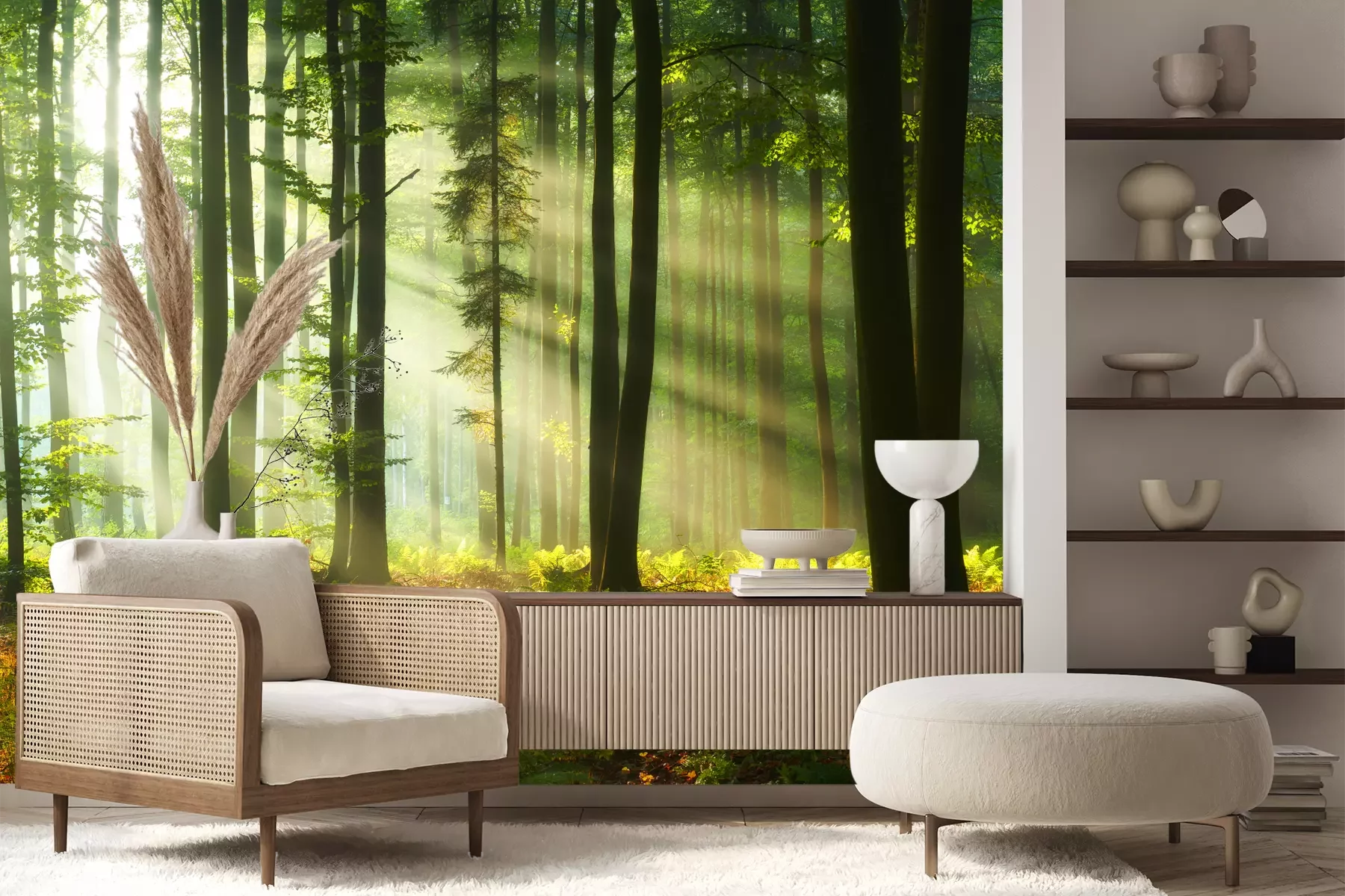 Das Material Premium+ besteht aus einer strukturierten Vinyl-Oberschicht und einem Trägermaterial (Vlies) mit einer Grammatur von 255 g/m², das kleine Unebenheiten der Wand zuverlässig kaschiert. Die feine Sandstruktur verleiht der Oberfläche eine luxuriöse Haptik, während das halbmatte Finish die Tiefe der Farben betont. Das Material ist dampfdurchlässig – so kann diese Fototapete auch in Küchen und Badezimmern eingesetzt werden. Die maximale Breite einer Tapetenbahn beträgt 100 cm. Bei größeren Abmessungen besteht die Fototapete aus mehreren gleich großen Bahnen. Der Kleber wird direkt auf die Wand aufgetragen, und die Fototapete wird auf Stoß angebracht, was für einen ästhetischen Effekt ohne sichtbare Fugen sorgt. Die Oberfläche ist pflegeleicht und kann bei Bedarf sanft mit einem feuchten Tuch abgewischt werden.