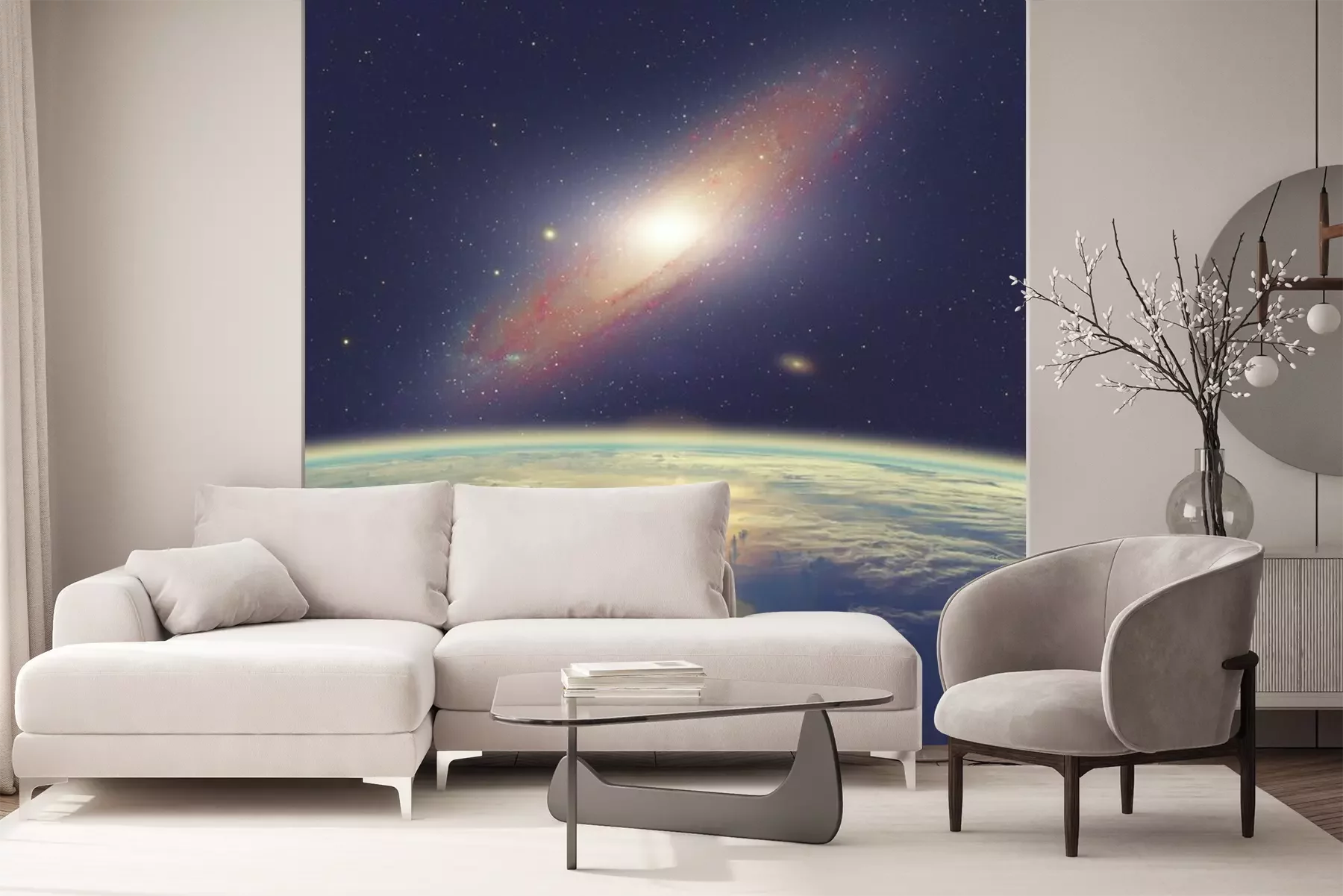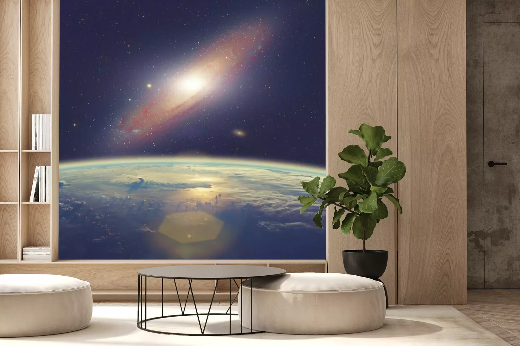 Das Material Premium+ besteht aus einer strukturierten Vinyl-Oberschicht und einem Trägermaterial (Vlies) mit einer Grammatur von 255 g/m², das kleine Unebenheiten der Wand zuverlässig kaschiert. Die feine Sandstruktur verleiht der Oberfläche eine luxuriöse Haptik, während das halbmatte Finish die Tiefe der Farben betont. Das Material ist dampfdurchlässig – so kann diese Fototapete auch in Küchen und Badezimmern eingesetzt werden. Die maximale Breite einer Tapetenbahn beträgt 100 cm. Bei größeren Abmessungen besteht die Fototapete aus mehreren gleich großen Bahnen. Der Kleber wird direkt auf die Wand aufgetragen, und die Fototapete wird auf Stoß angebracht, was für einen ästhetischen Effekt ohne sichtbare Fugen sorgt. Die Oberfläche ist pflegeleicht und kann bei Bedarf sanft mit einem feuchten Tuch abgewischt werden.