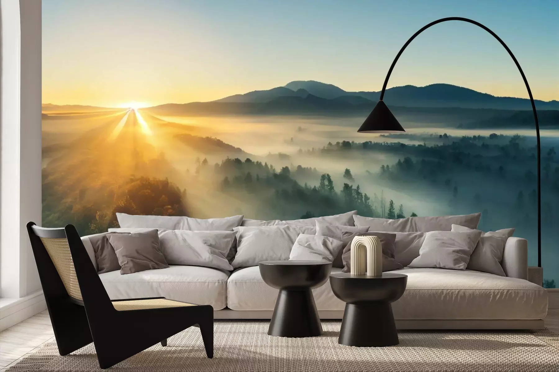 Das Material Premium+ besteht aus einer strukturierten Vinyl-Oberschicht und einem Trägermaterial (Vlies) mit einer Grammatur von 255 g/m², das kleine Unebenheiten der Wand zuverlässig kaschiert. Die feine Sandstruktur verleiht der Oberfläche eine luxuriöse Haptik, während das halbmatte Finish die Tiefe der Farben betont. Das Material ist dampfdurchlässig – so kann diese Fototapete auch in Küchen und Badezimmern eingesetzt werden. Die maximale Breite einer Tapetenbahn beträgt 100 cm. Bei größeren Abmessungen besteht die Fototapete aus mehreren gleich großen Bahnen. Der Kleber wird direkt auf die Wand aufgetragen, und die Fototapete wird auf Stoß angebracht, was für einen ästhetischen Effekt ohne sichtbare Fugen sorgt. Die Oberfläche ist pflegeleicht und kann bei Bedarf sanft mit einem feuchten Tuch abgewischt werden.