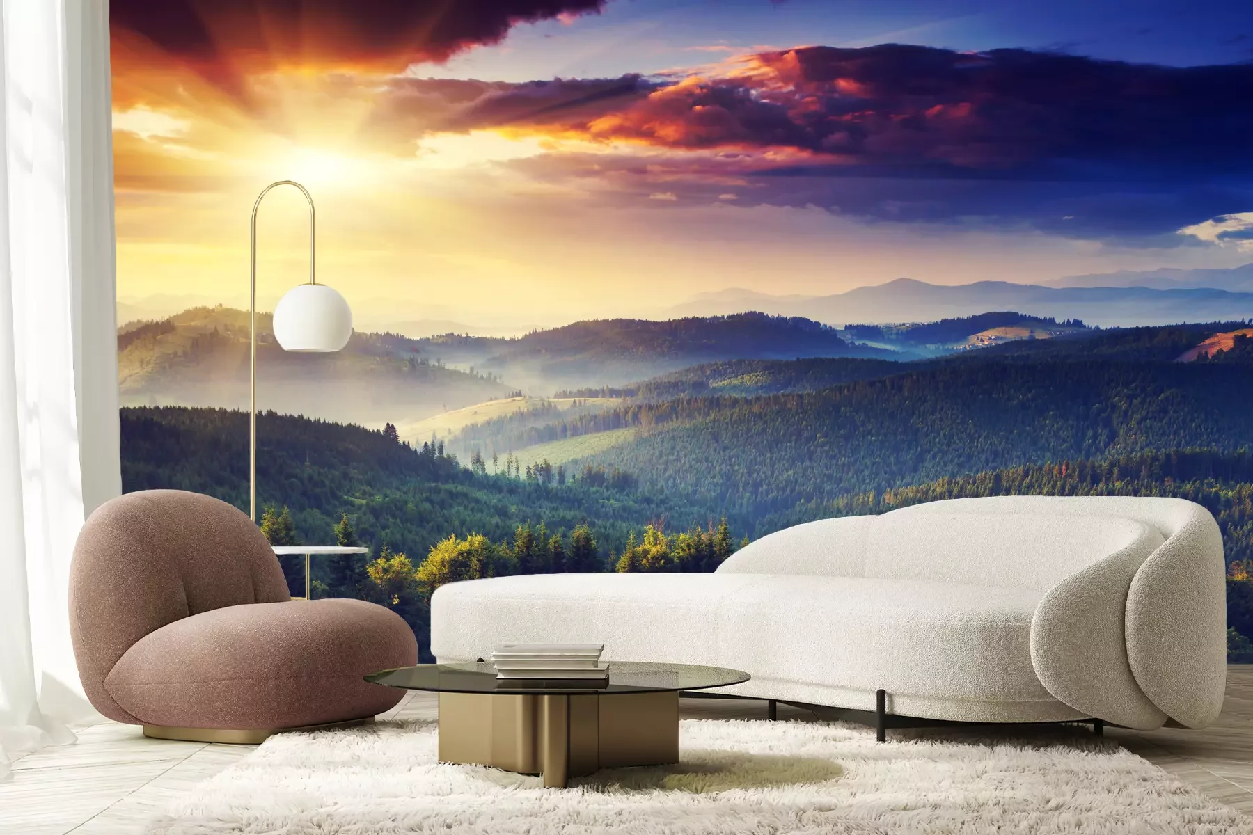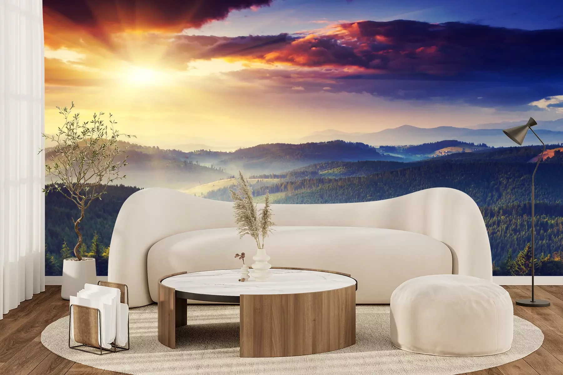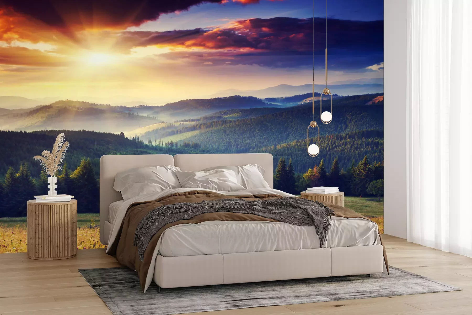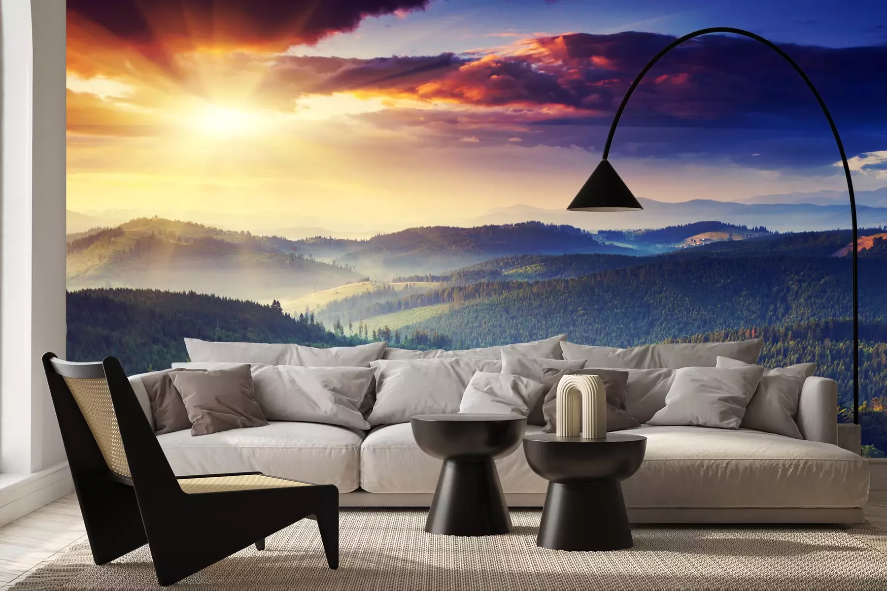 Fototapete Sonnenaufgang über majestätischen Bergen