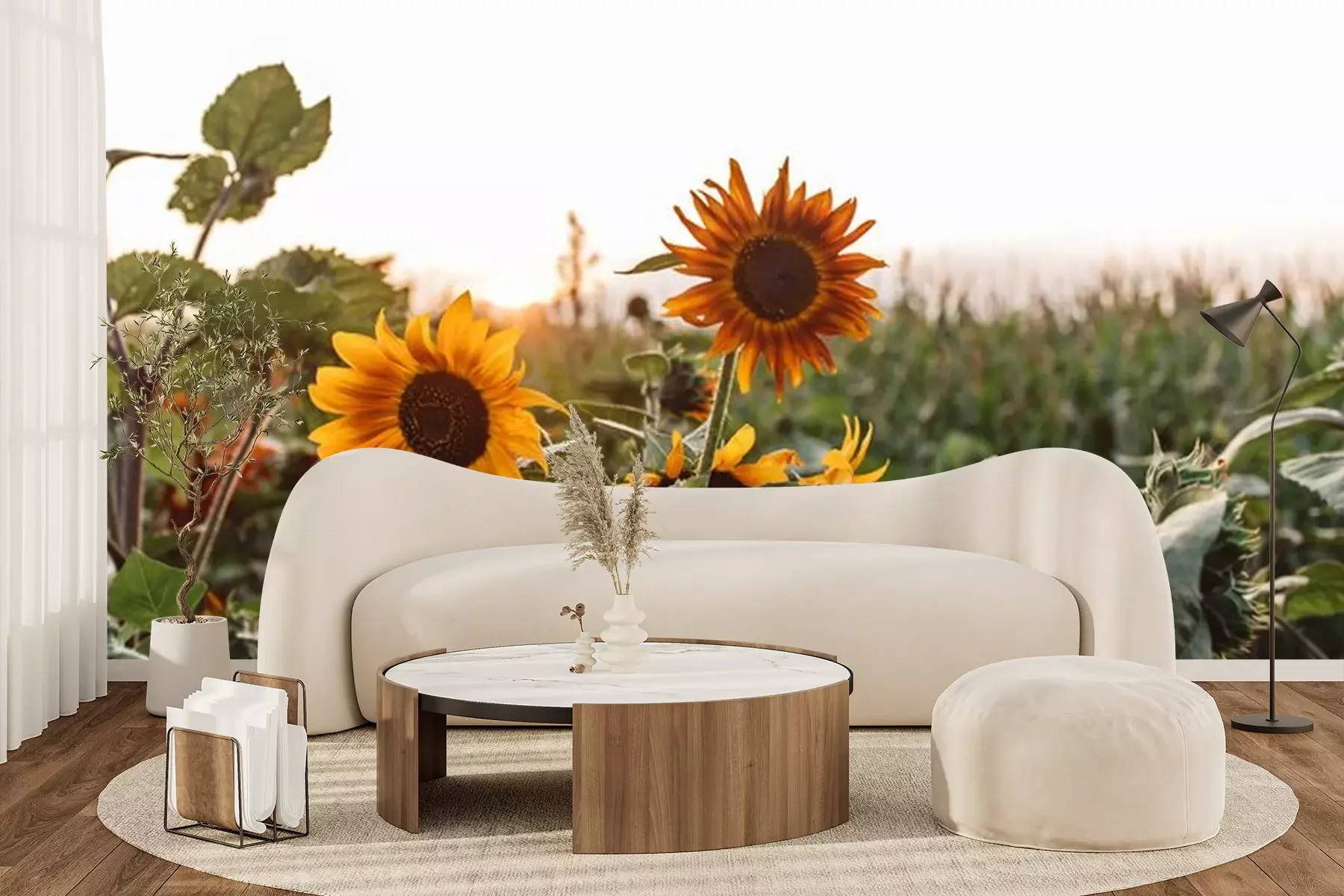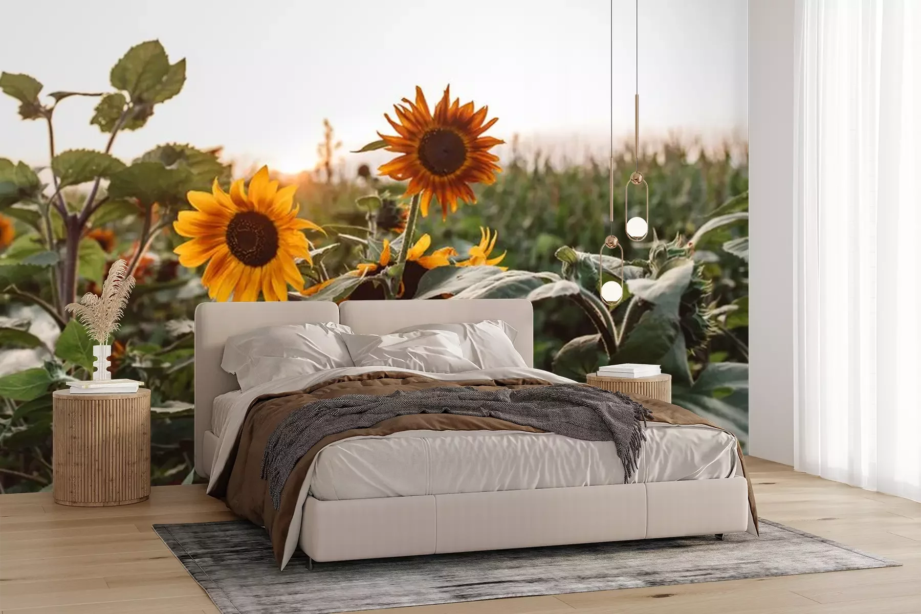 Fototapete Sonnenblumen und grüne Blätter