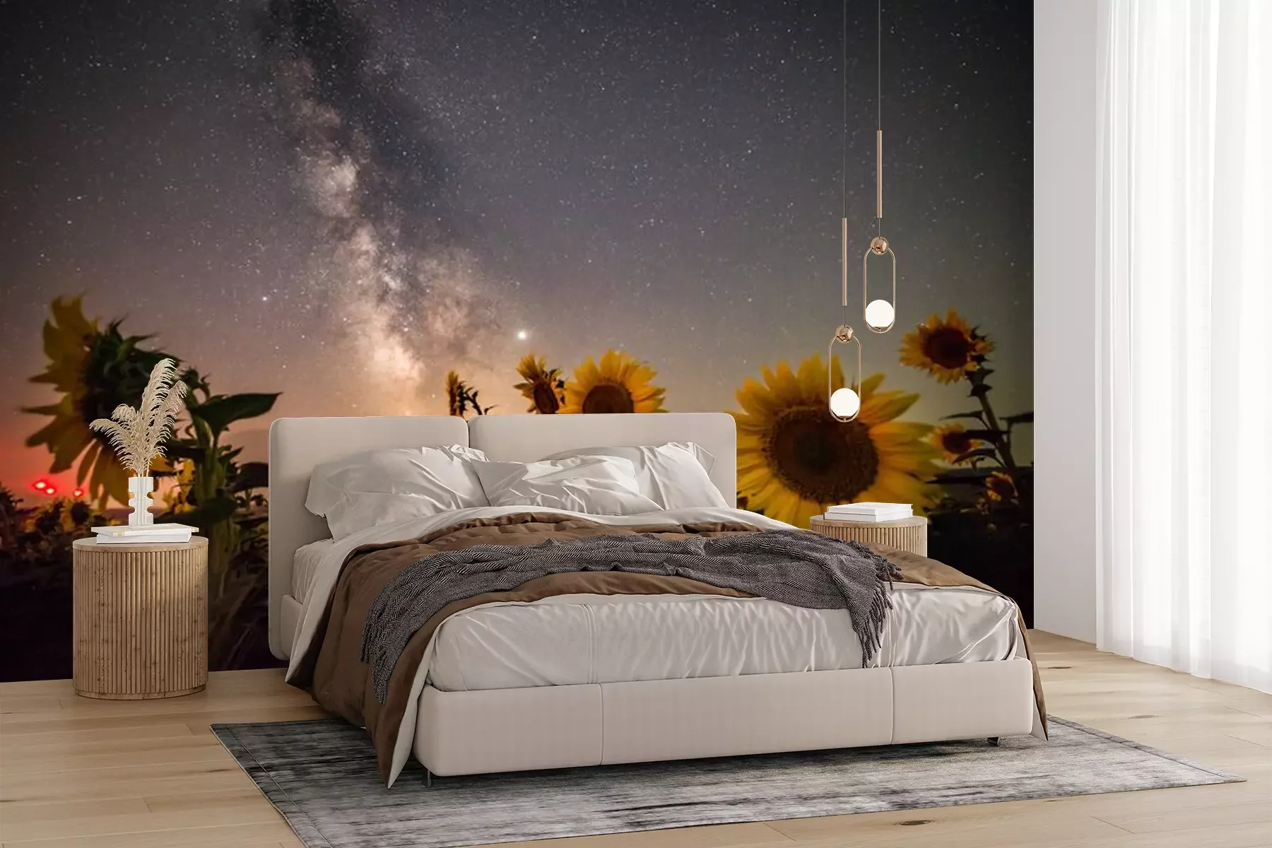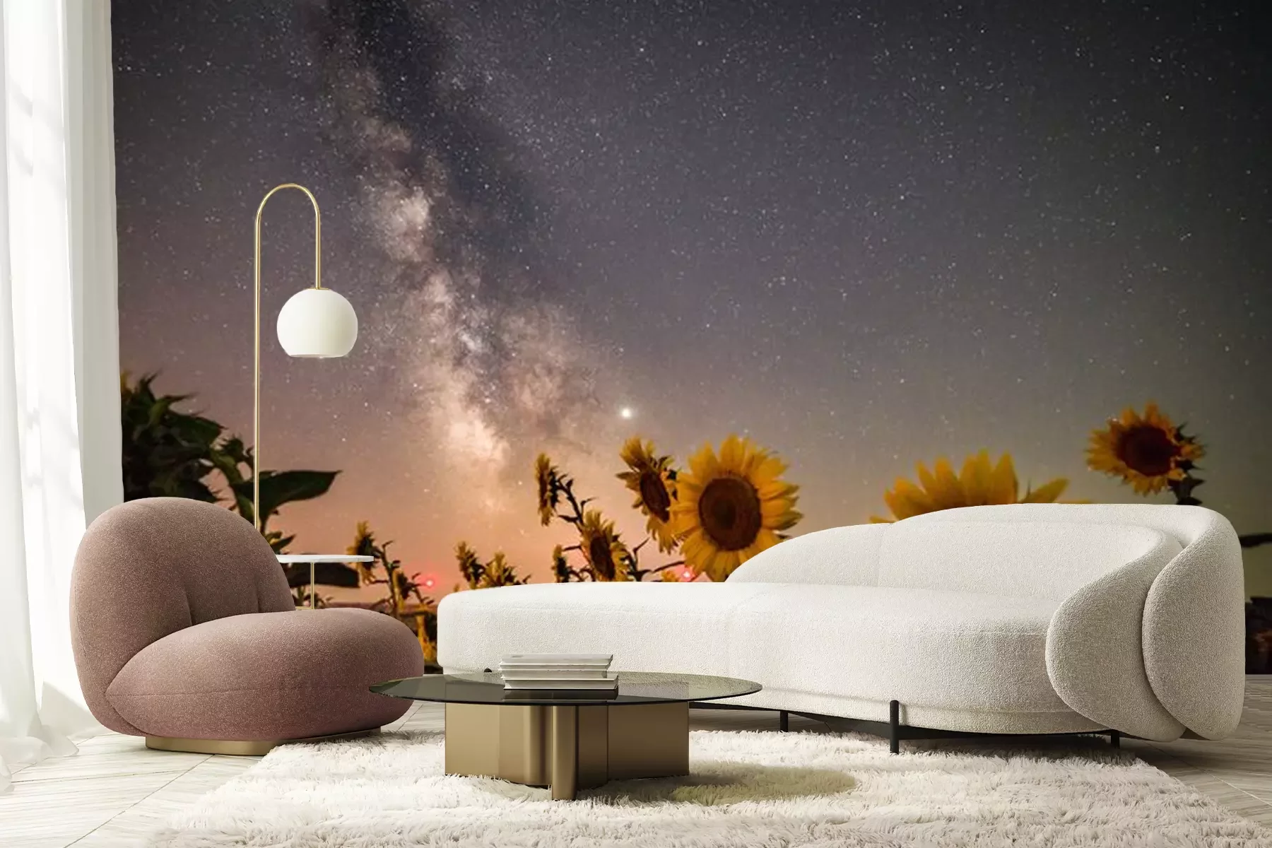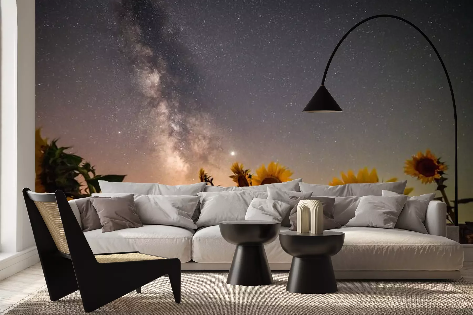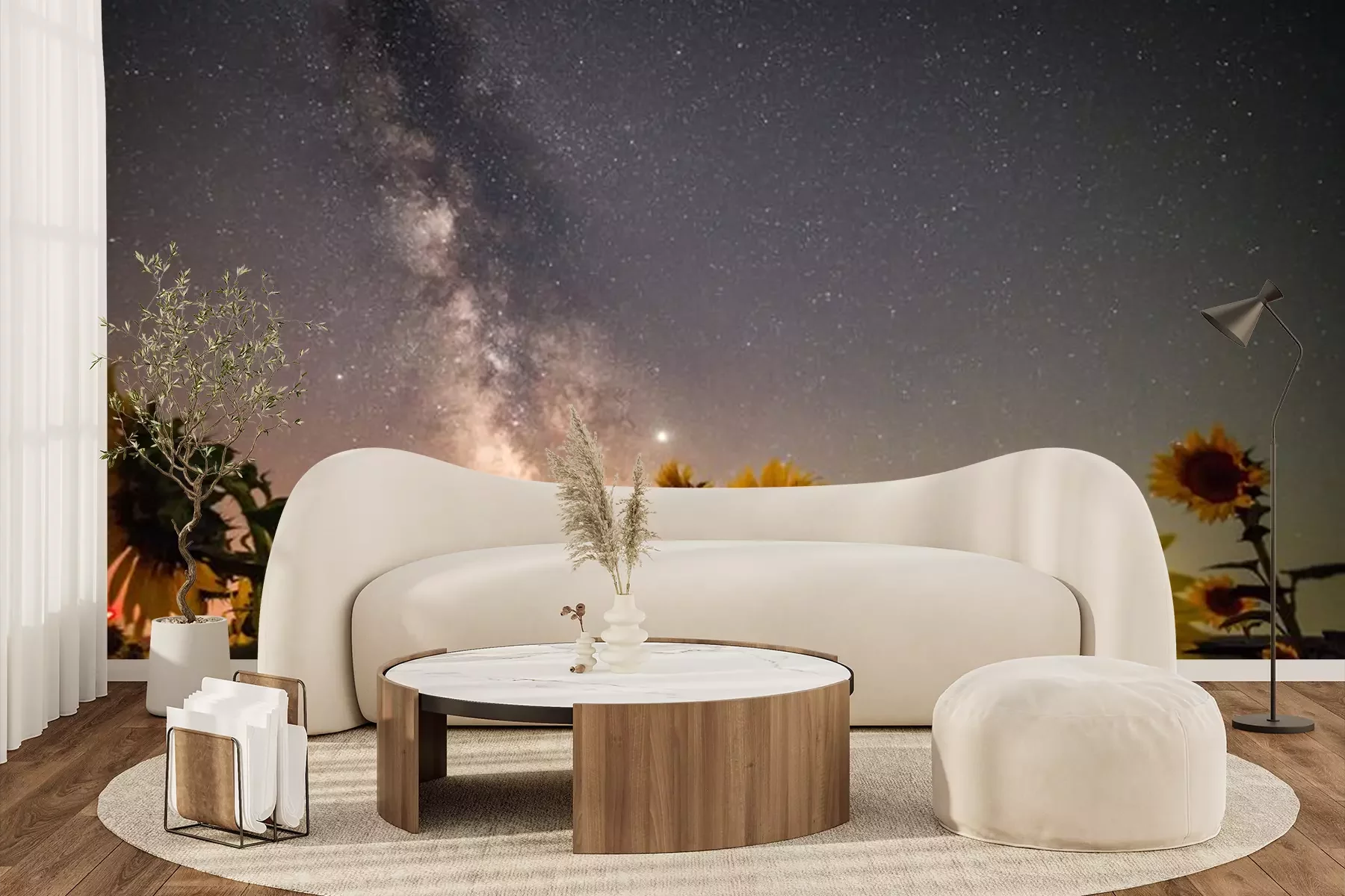 Fototapete Sonnenblumen und Sternenhimmel