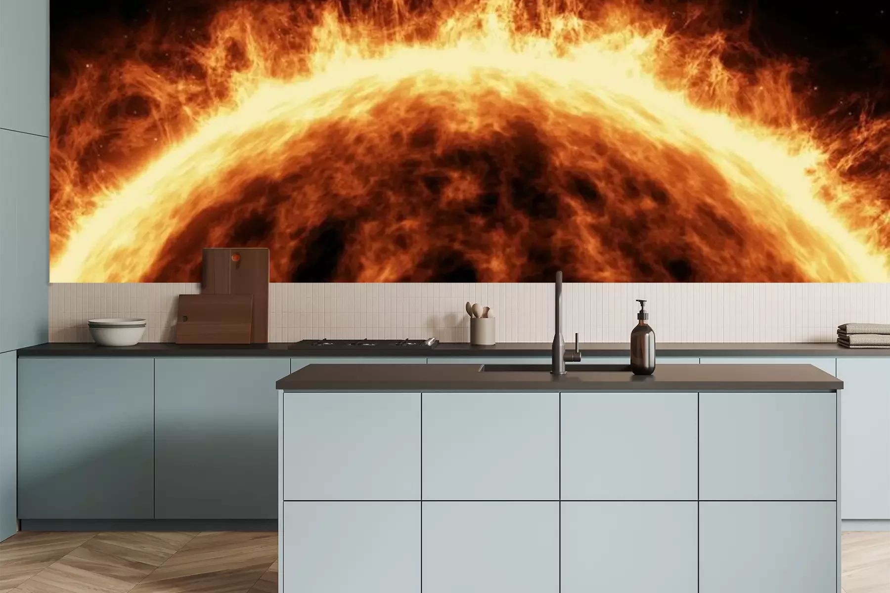 Fototapete Sonnenplanet in Flammen dunkler Hintergrund