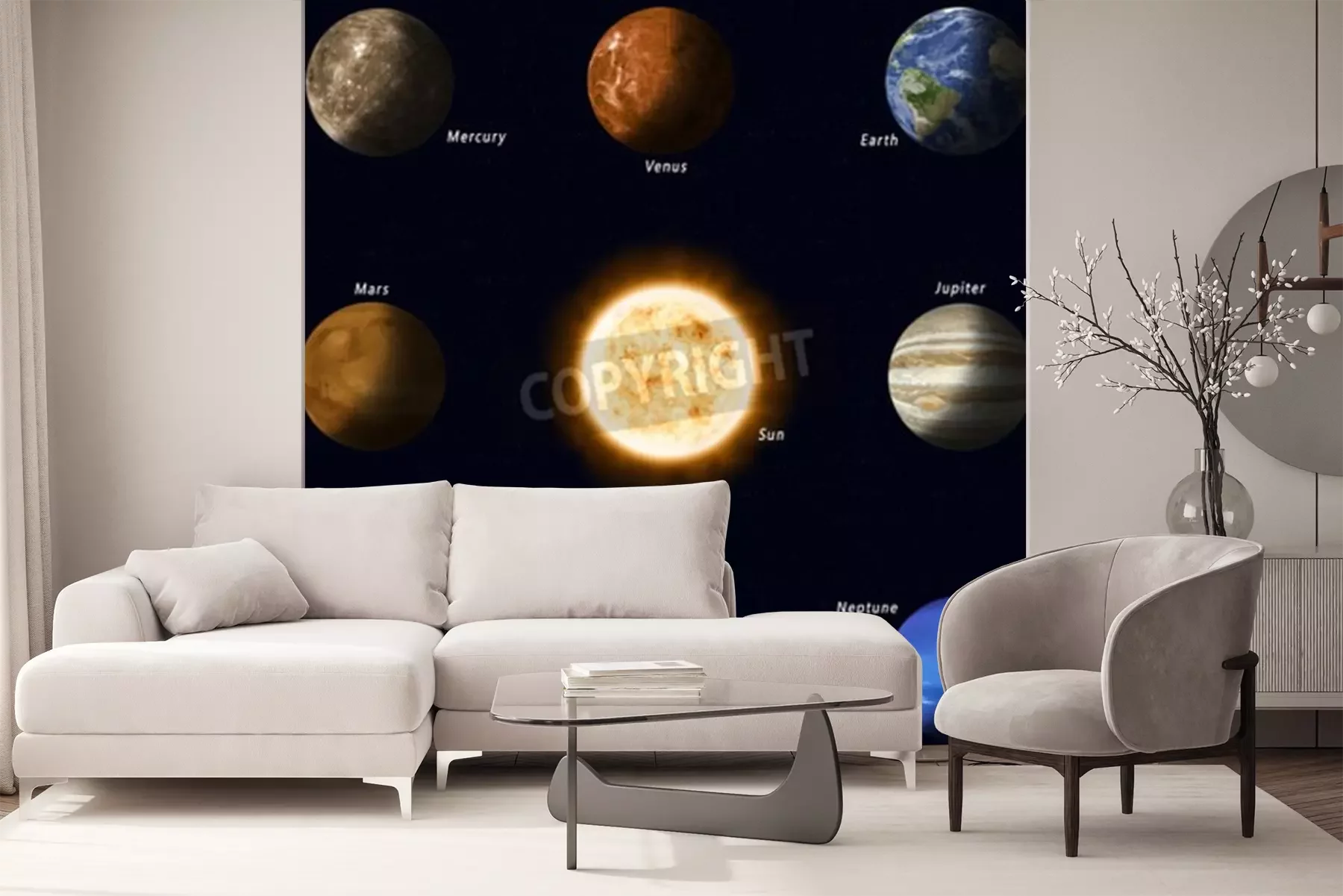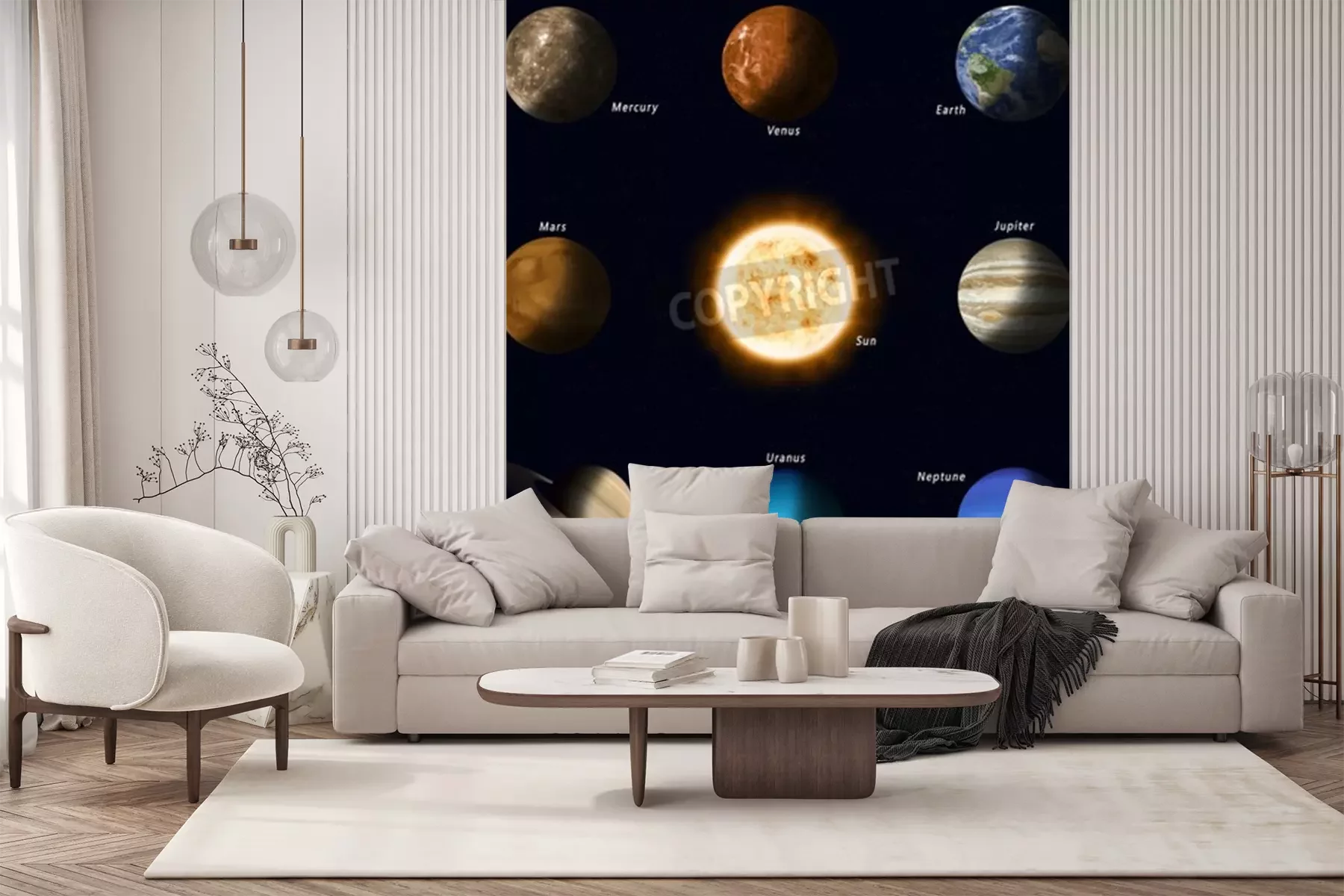 Fototapete Sonnensystem mit Sonne im Zentrum