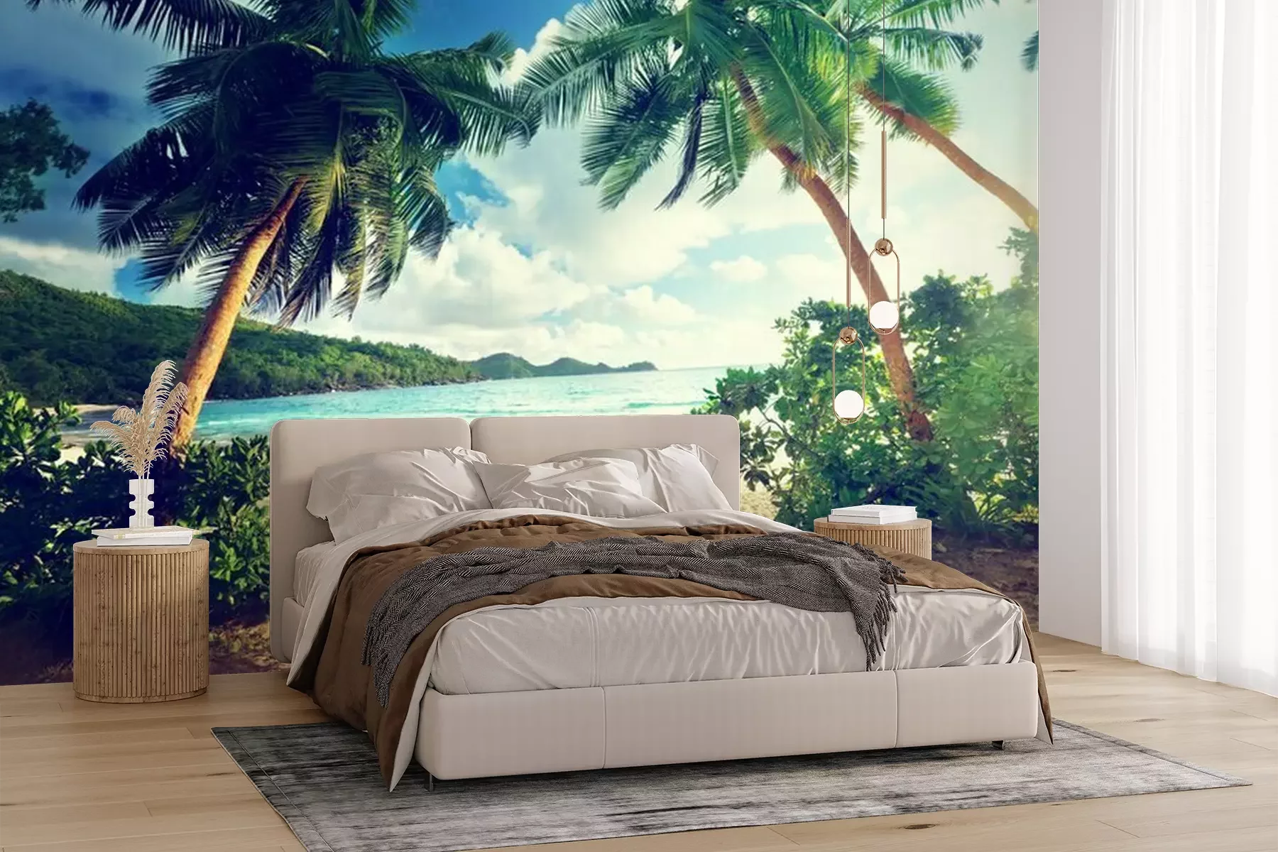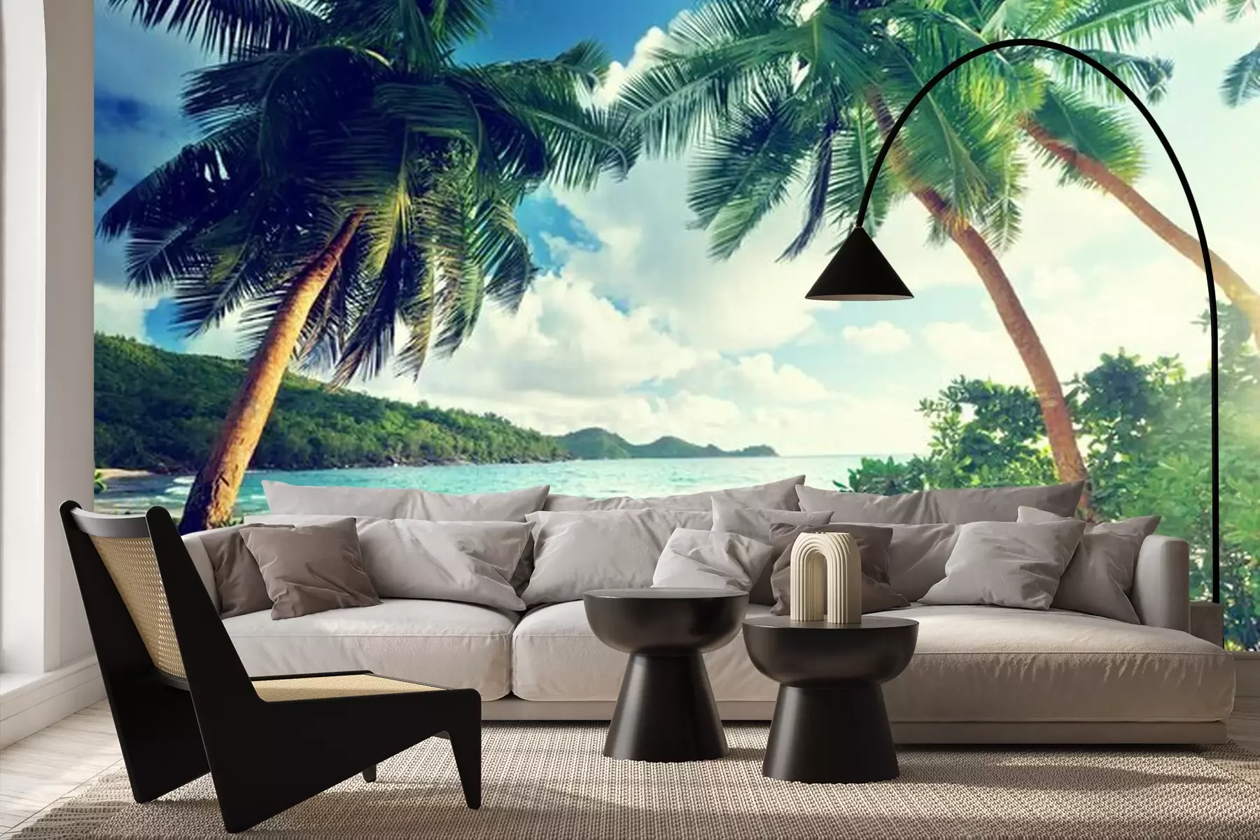 Palmen am Ozean auf den SeychellenFototapete