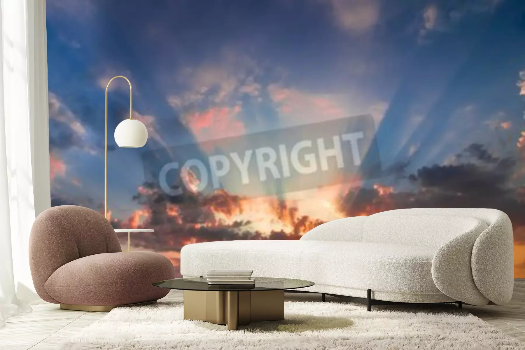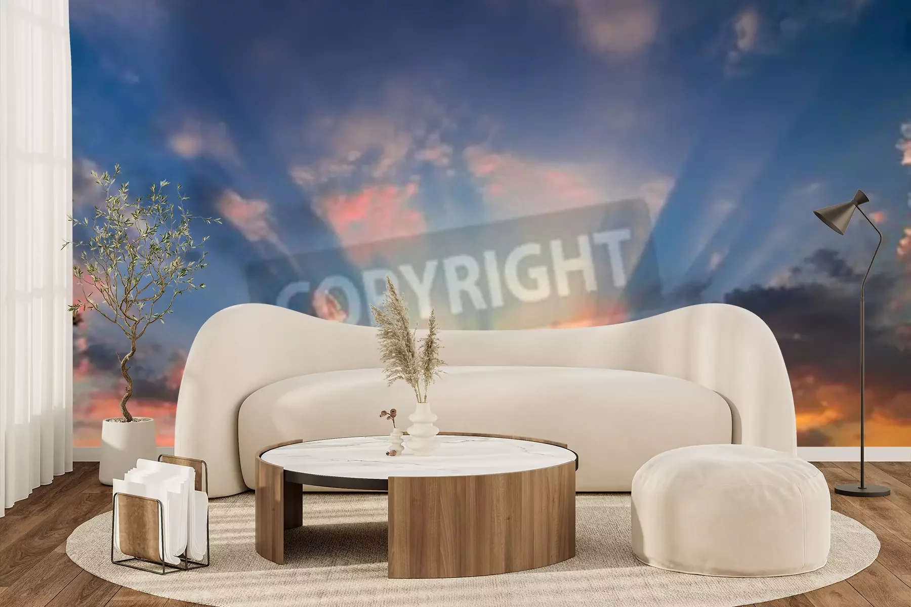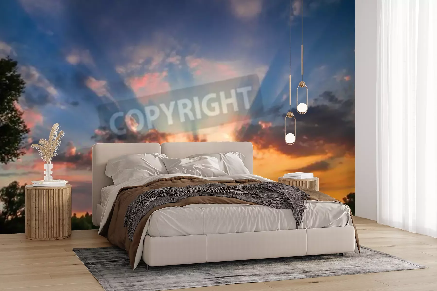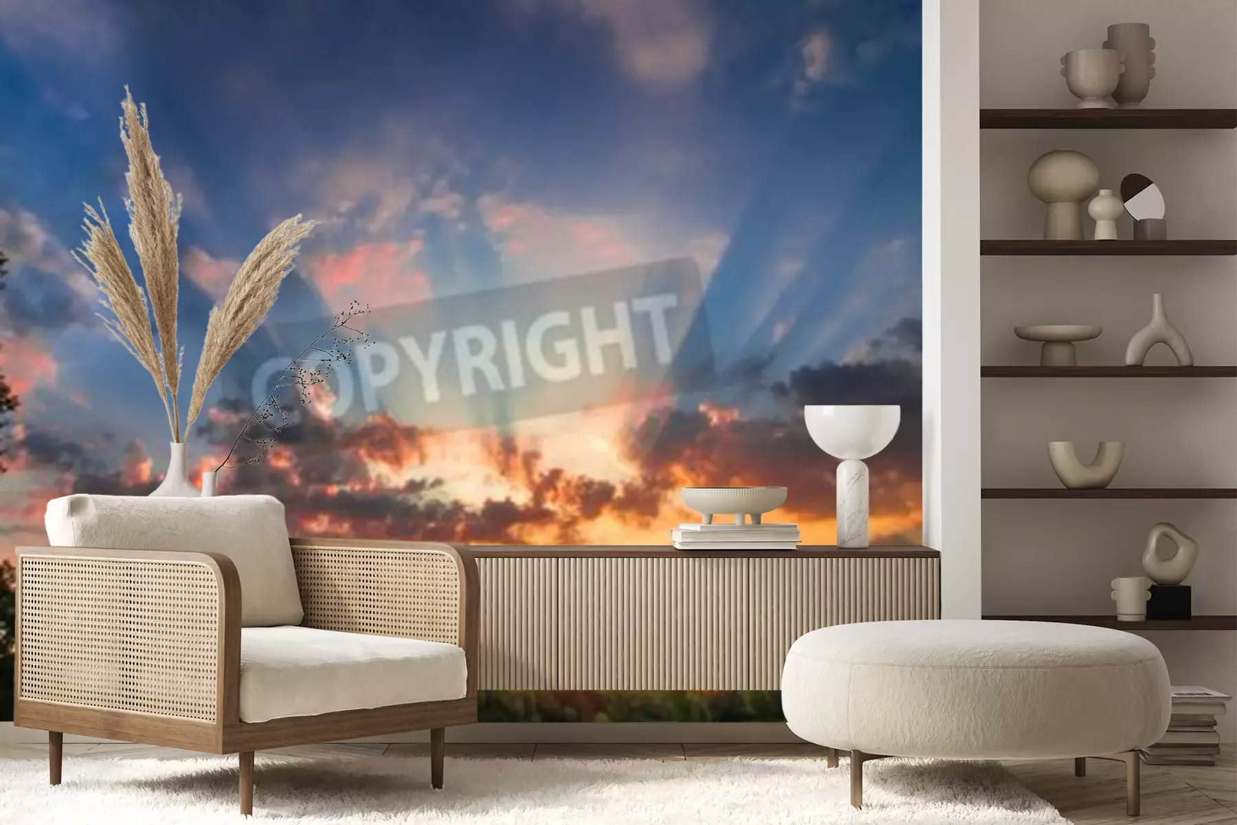 Fototapete Sonnenuntergang im Garten