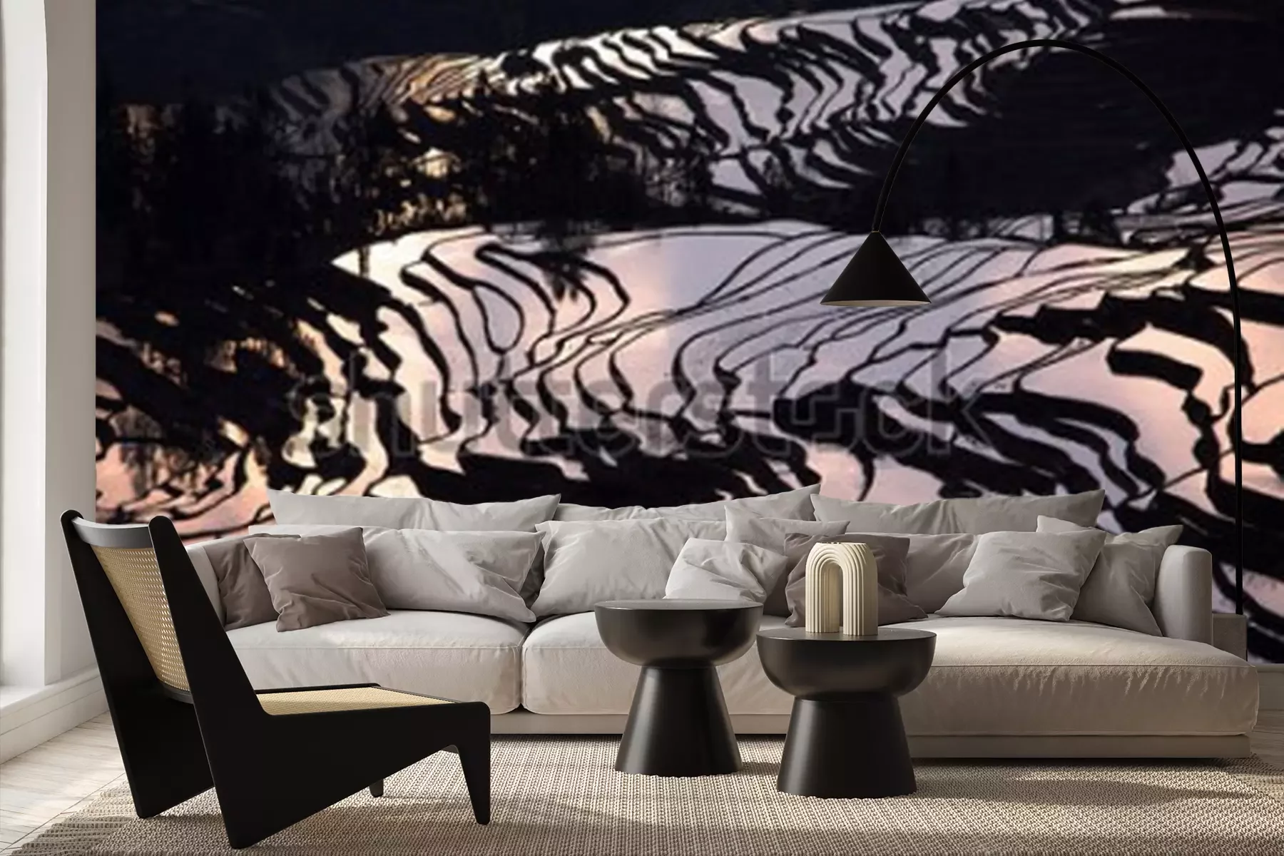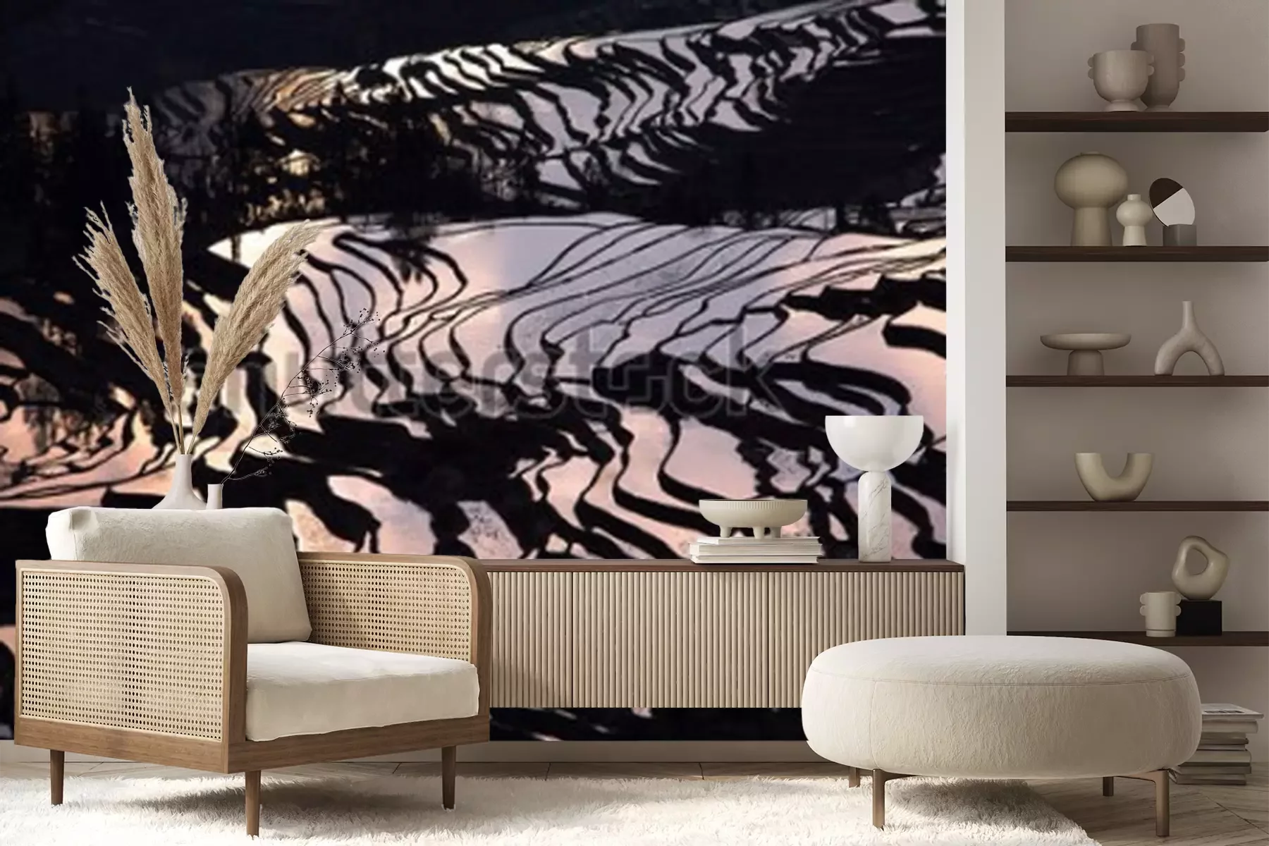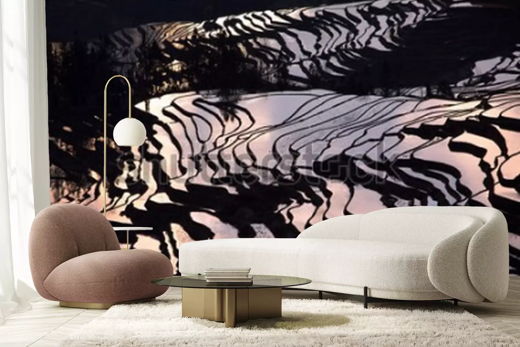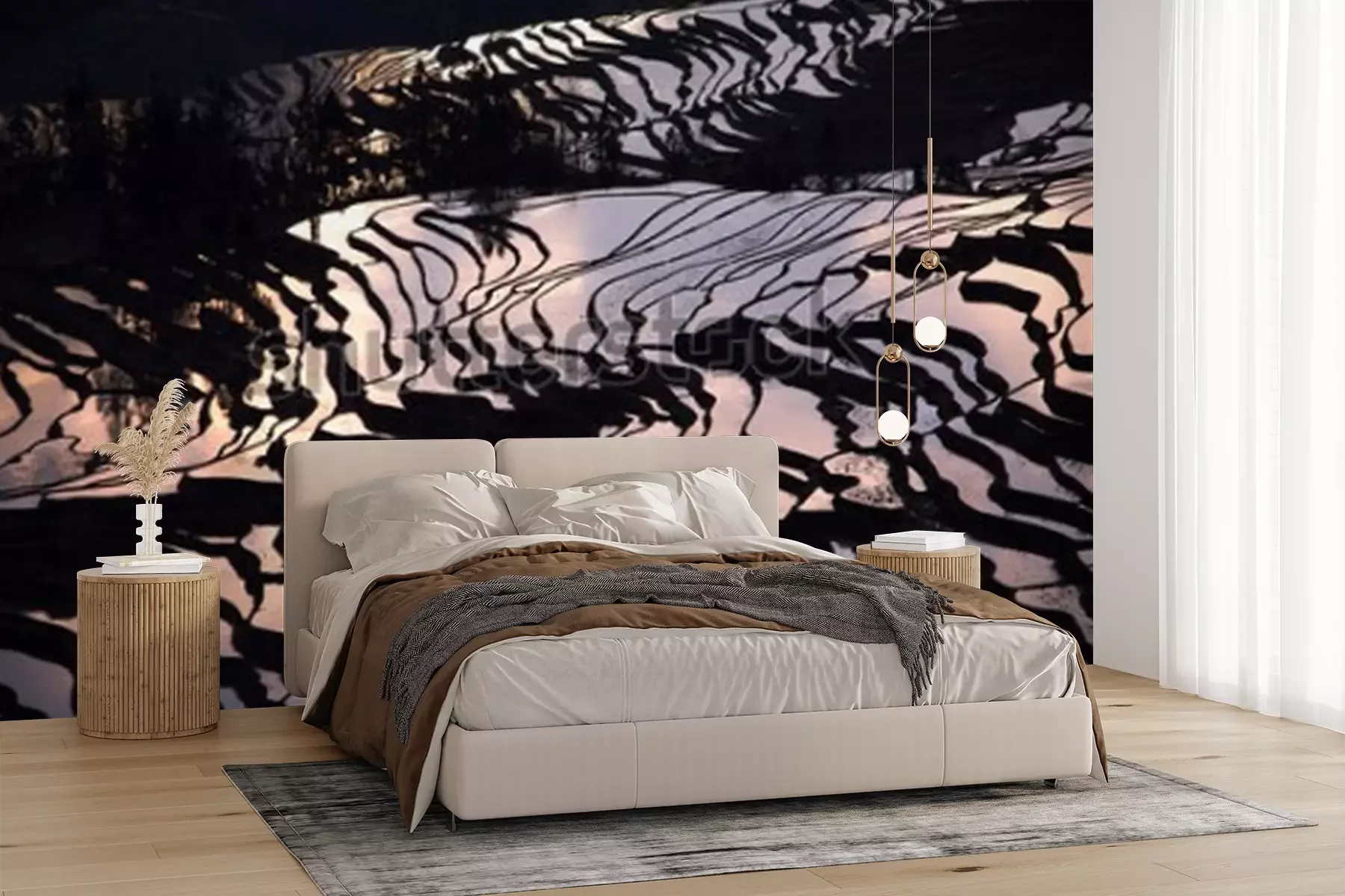 Fototapete Sonnenuntergang spiegelt sich im Feld