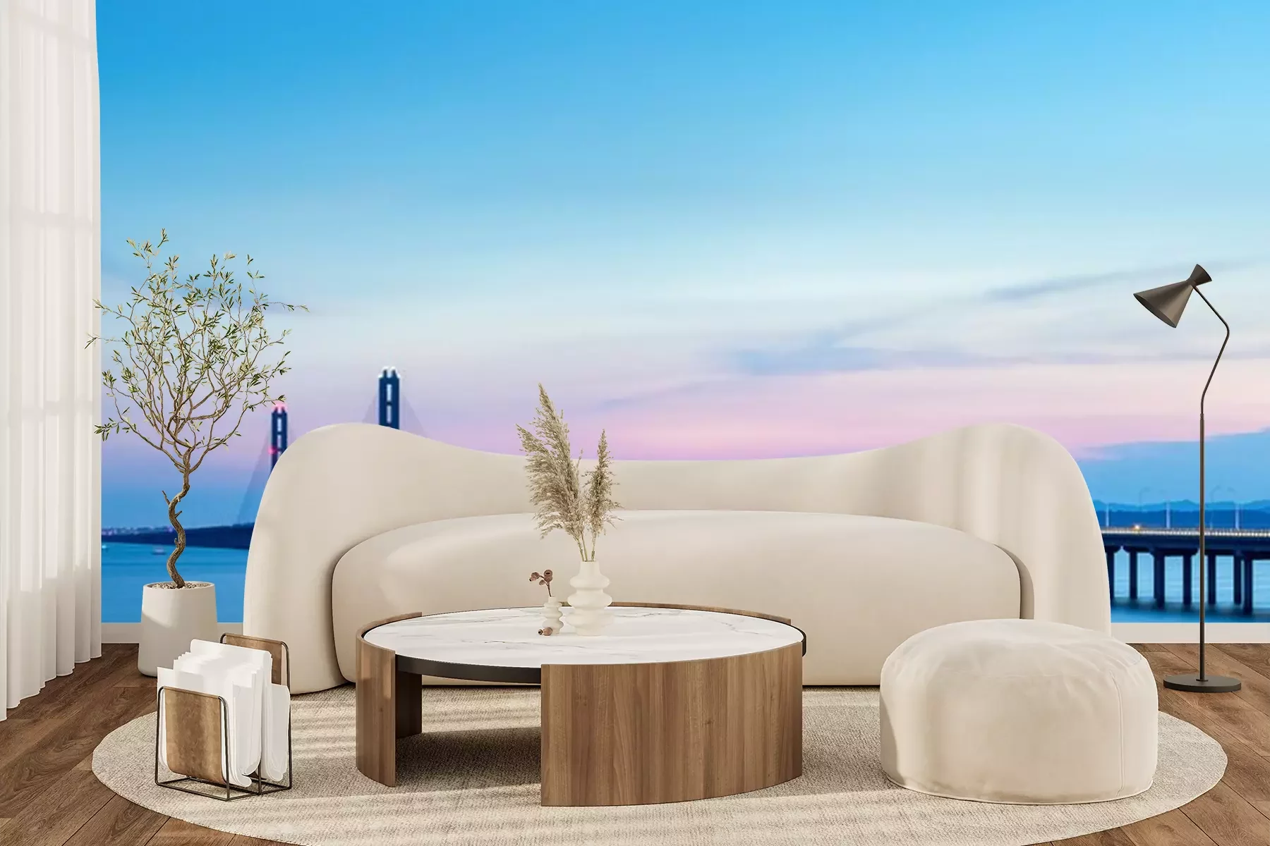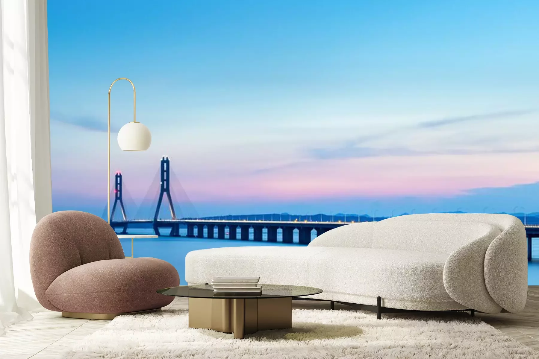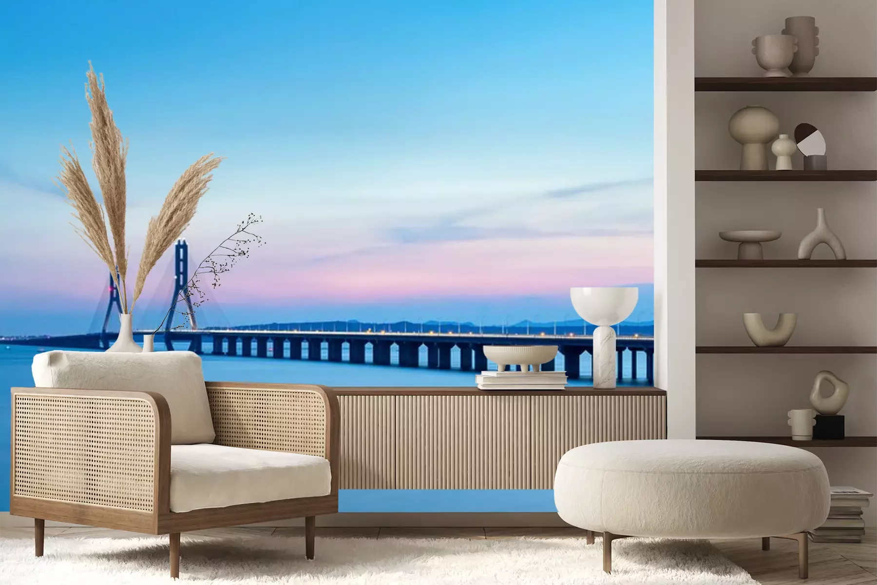 Fototapete Sonnenuntergang über blauem Wasser