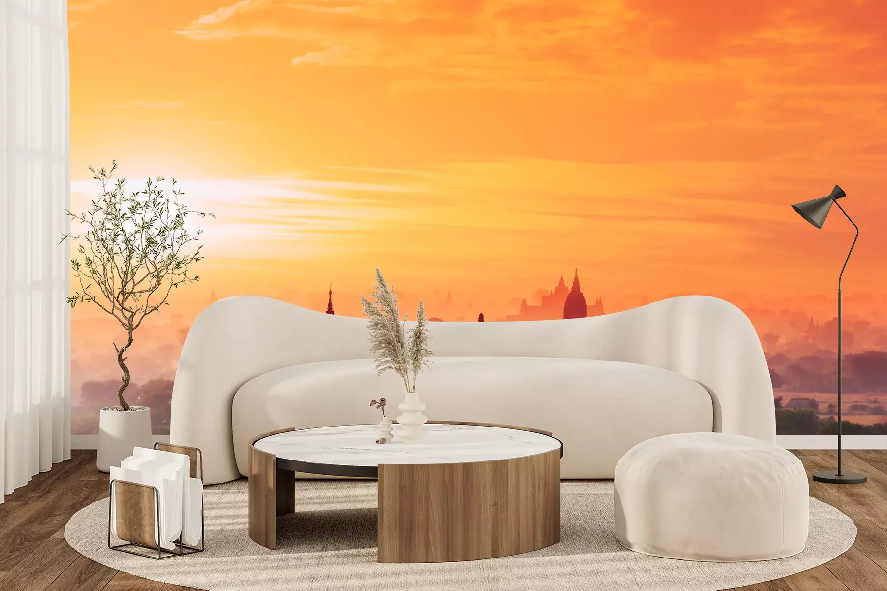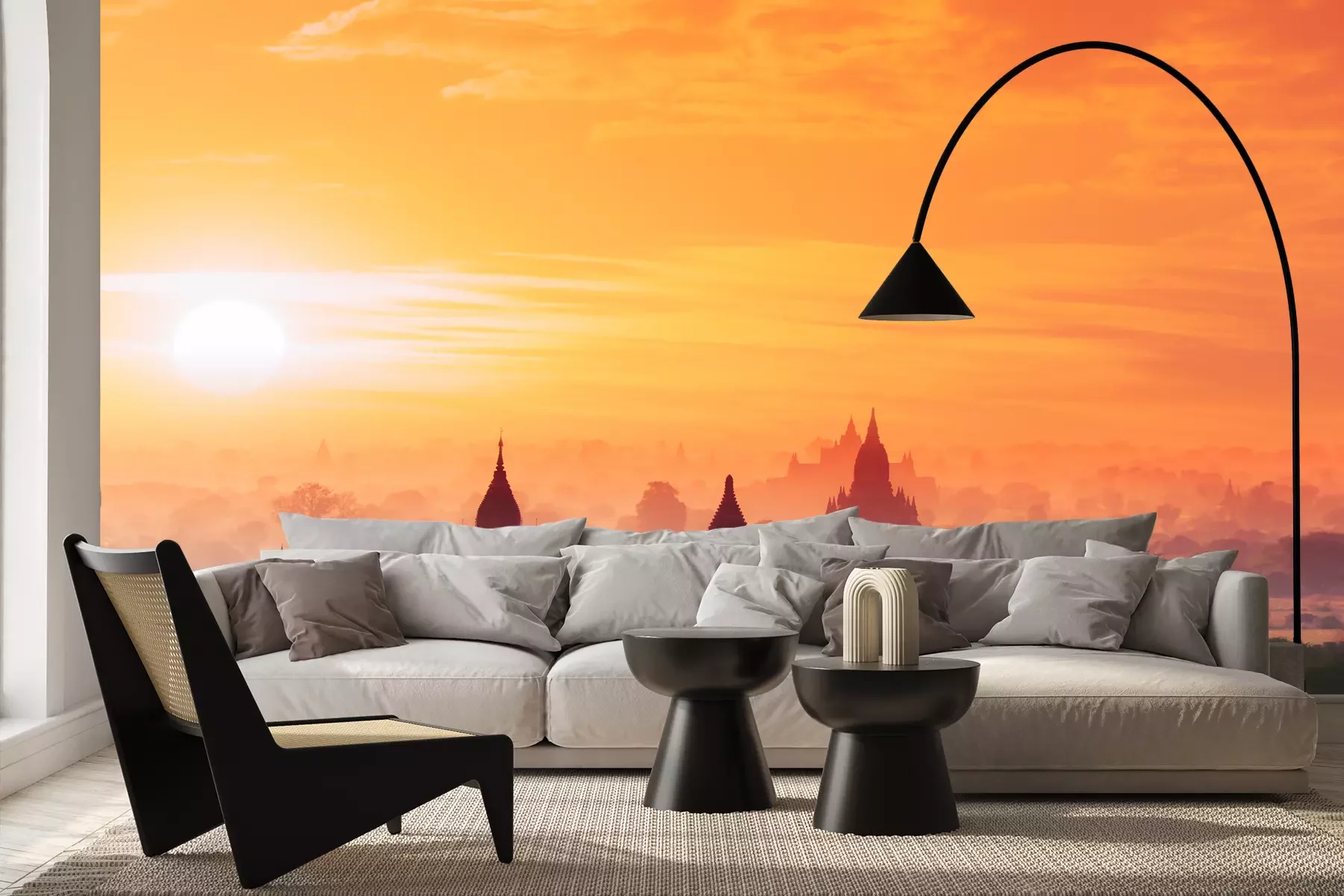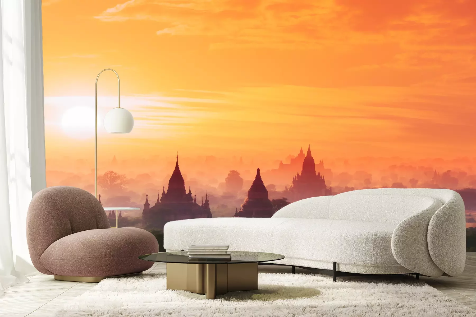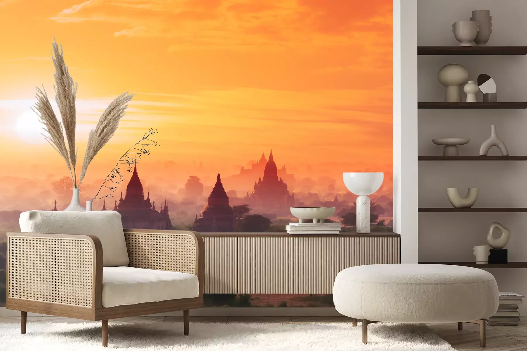 Fototapete Sonnenuntergang über buddhistischen Tempeln