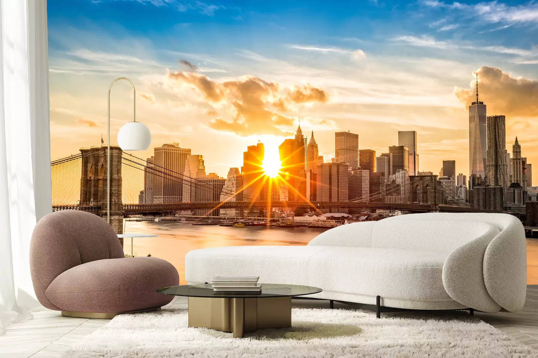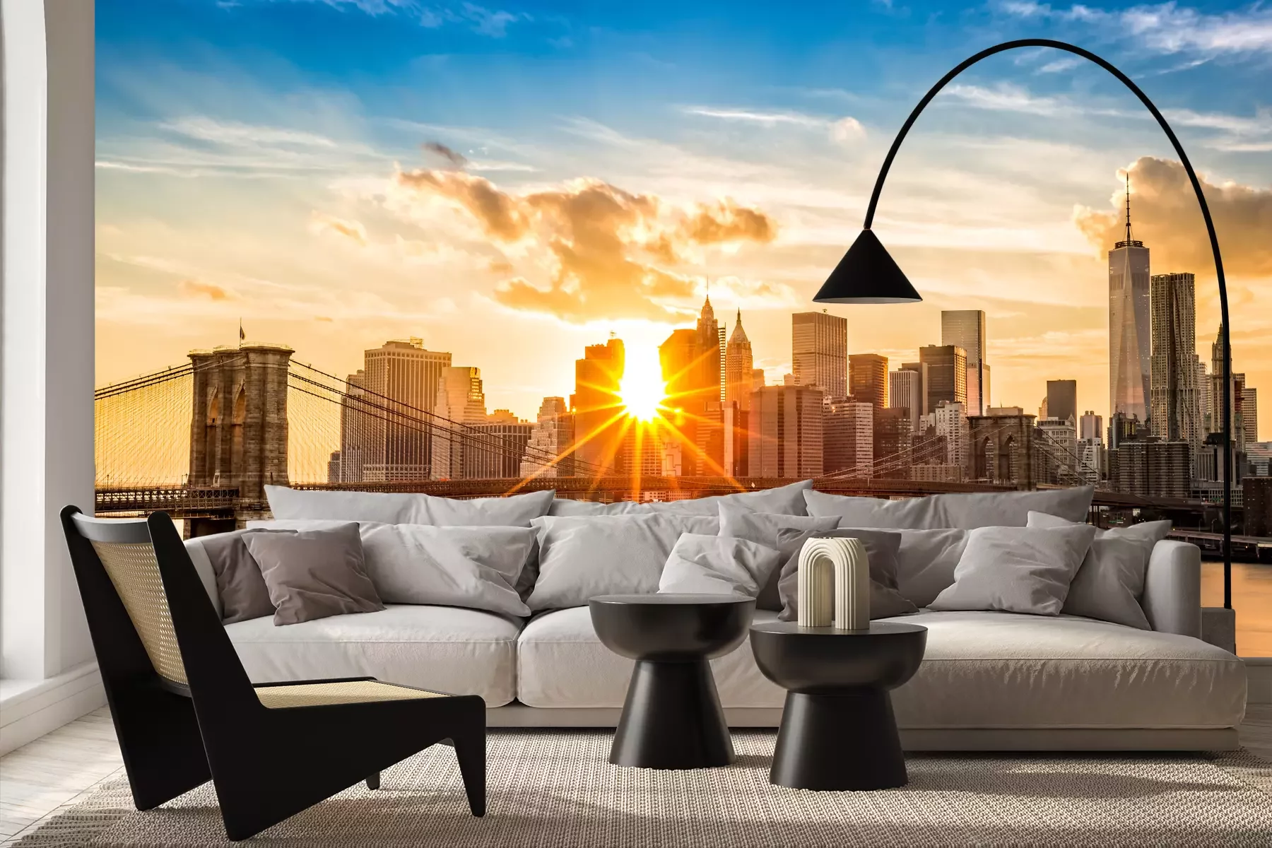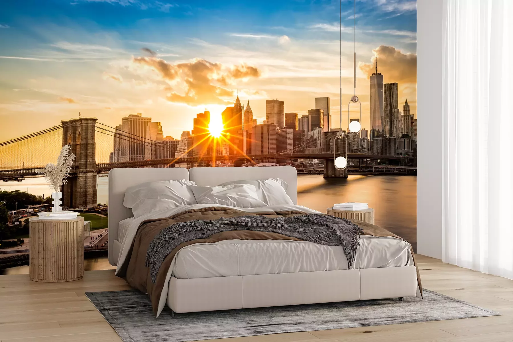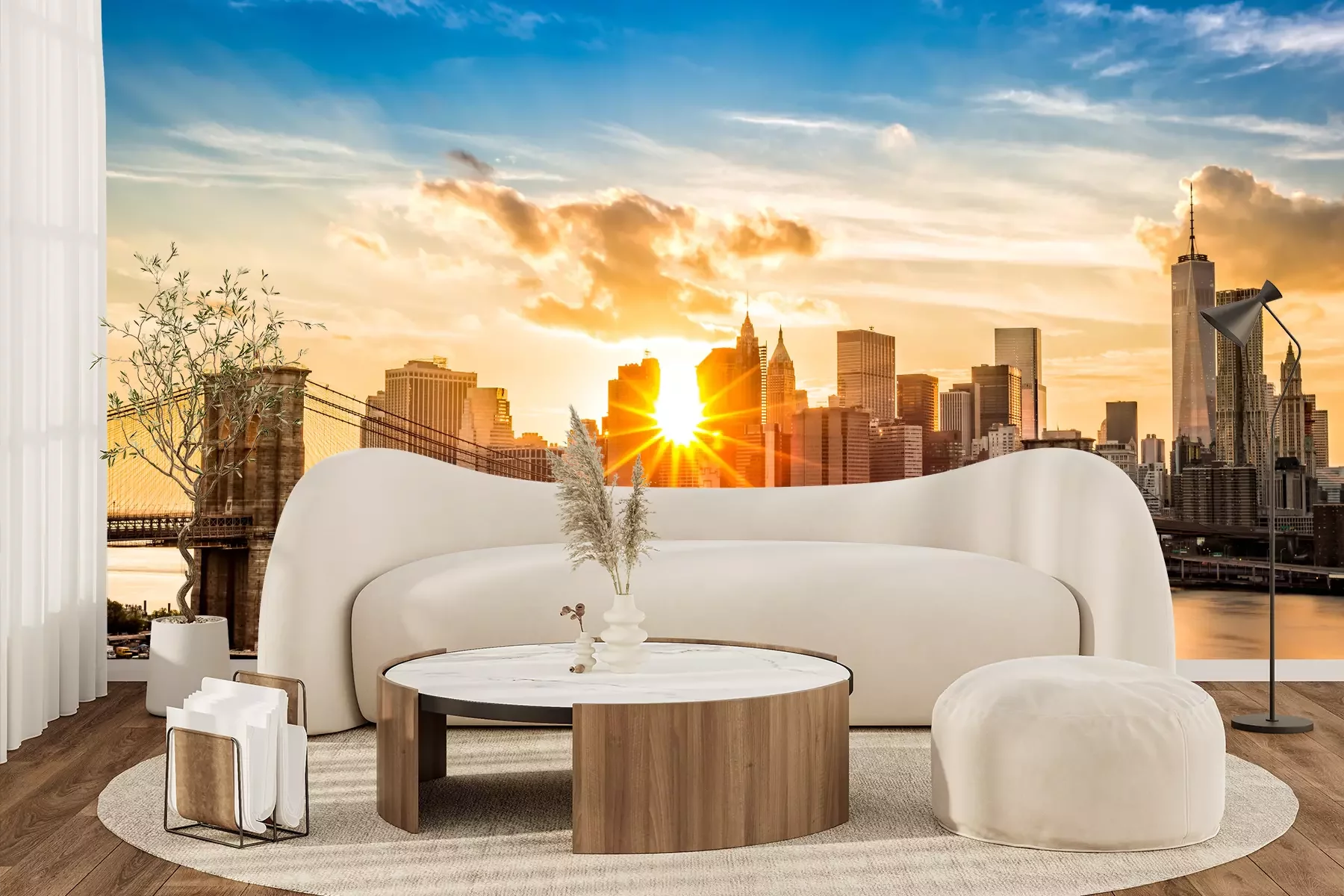 Fototapete Sonnenuntergang zwischen Gebäuden in New York City